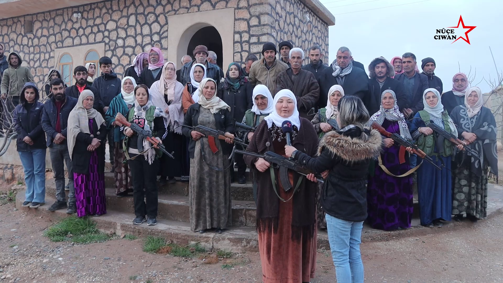 Bu doğrultuda, Kobanê’nin güney kırsalındaki Demircek köyü halkı da bir tabur oluşturarak genel seferberliğe katıldığını duyurdu. Köy halkı, Türk devleti ve çetelerinin soykırım saldırılarına karşı kendi savunmalarını örgütleyerek, QSD savaşçılarıyla birlikte bölgelerini koruma kararı aldı.