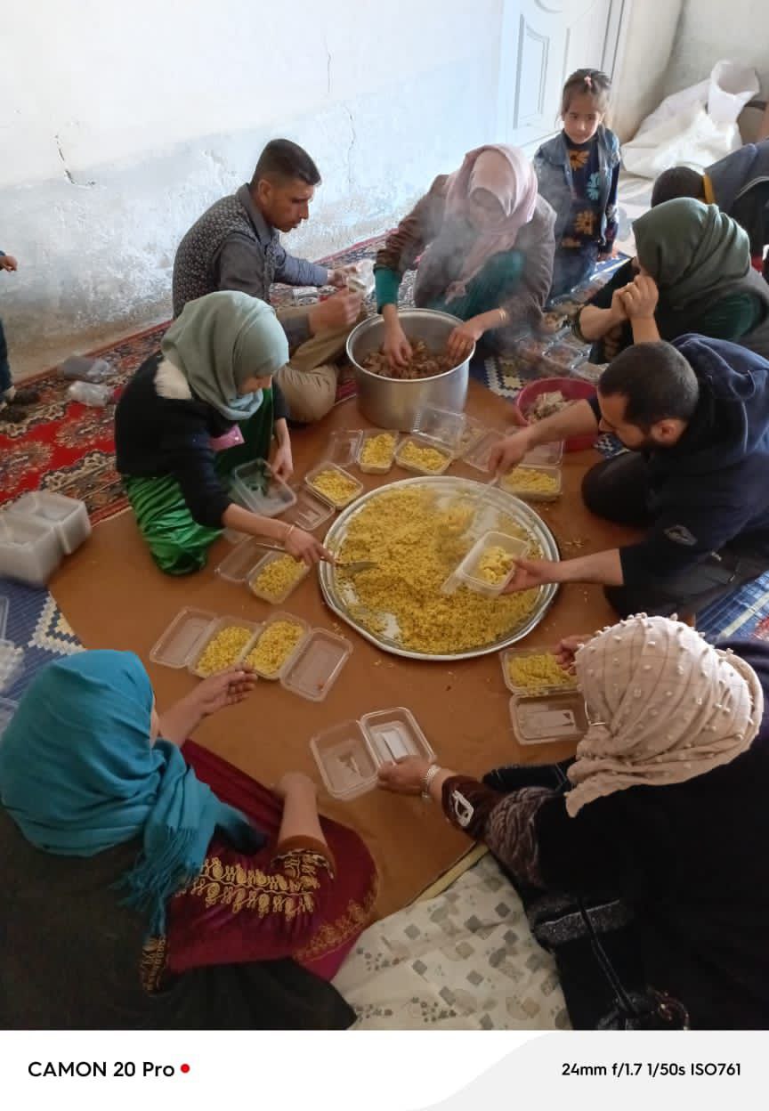 Kobanê şehrine bağlı Pîrmamo köyü sakinleri, bir evde toplanarak yemek hazırlayıp savaş cephelerindeki savaşçılara göndererek seferberliğe katılım çağrısında üzerine düşen görevi yerine getiriyor.