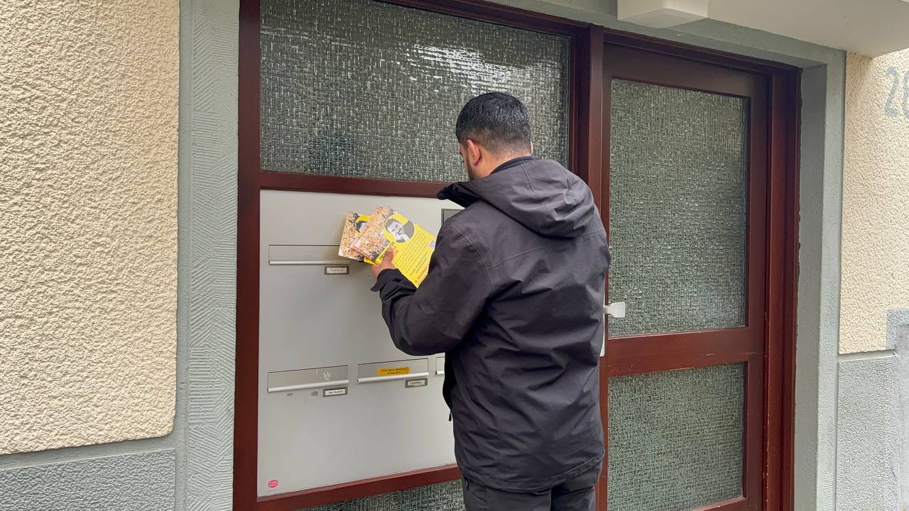 KÖLN – Almanya’nın Köln şehrinde Tevgera Ciwanên Şoreşger (TCŞ) üyesi gençler, KCDK-E Eşbaşkanı Zübeyde Zümrüt ve Kürdistanlılar, Önder APO’nun fiziki özgürlüğü için 16 Kasım’da Köln şehrinde düzenlenecek olan büyük Köln mitingine çağrıda bulundu, bildiriler dağıttı.