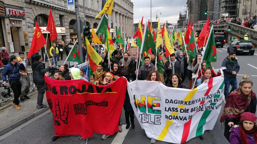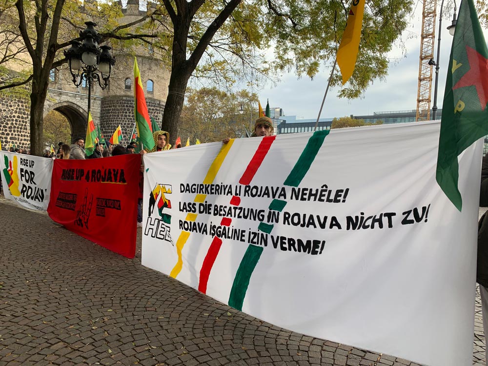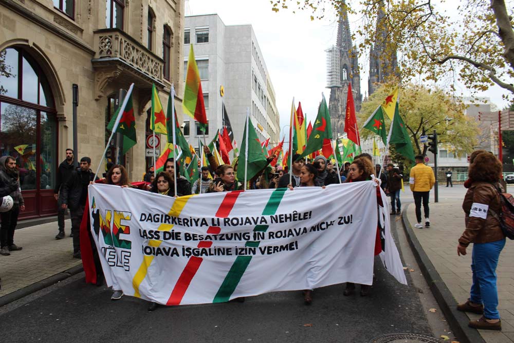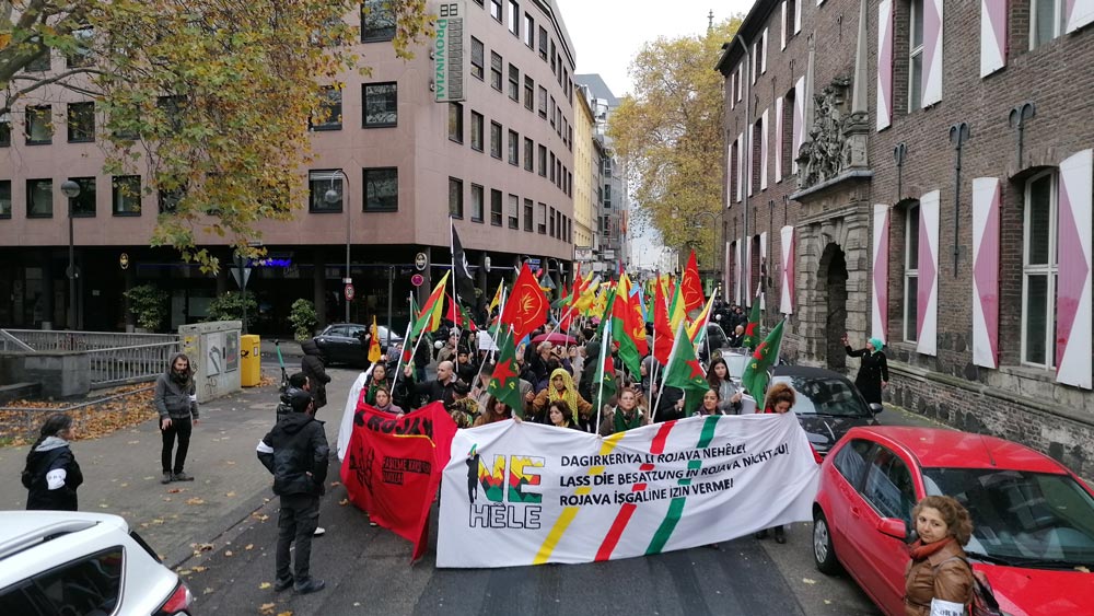 KÖLN – 9 Kasım’da Almanya’nın Köln kentinde saat 13:00’de Tevgera Ciwanên Şoreşger ve Jinên Ciwan ên Azad’ın başladıkları Nehêle (İzin Verme) hamlesi çerçevesinde yürüyüş gerçekleştirildi. Faşist Türk devletin Rojava’ya yönelik işgal ve soykırım saldırılarının protesto edildiği eyleme Mezopotamya İnançlar Platformu, Fed-Med, Tev-Çand Kurumları ile çok sayıda Kürdistanlı ve enternasyonalist aktivist katıldı. Köln HBF’un önünde yürüyüşe geçen eylemciler sık sık „Bê Serok Jiyan Nabe“, „Biji Serok APO“ sloganları eşliğinde Rudolf Platz meydana ulaştı.