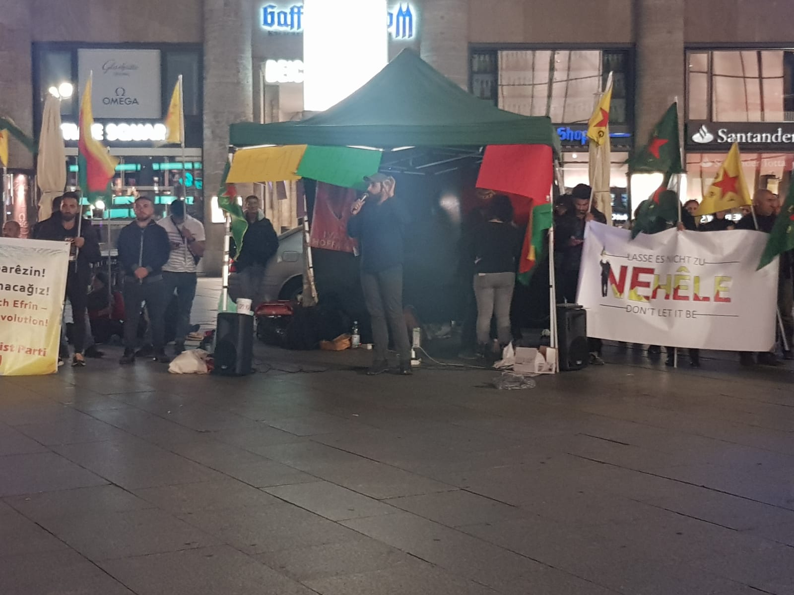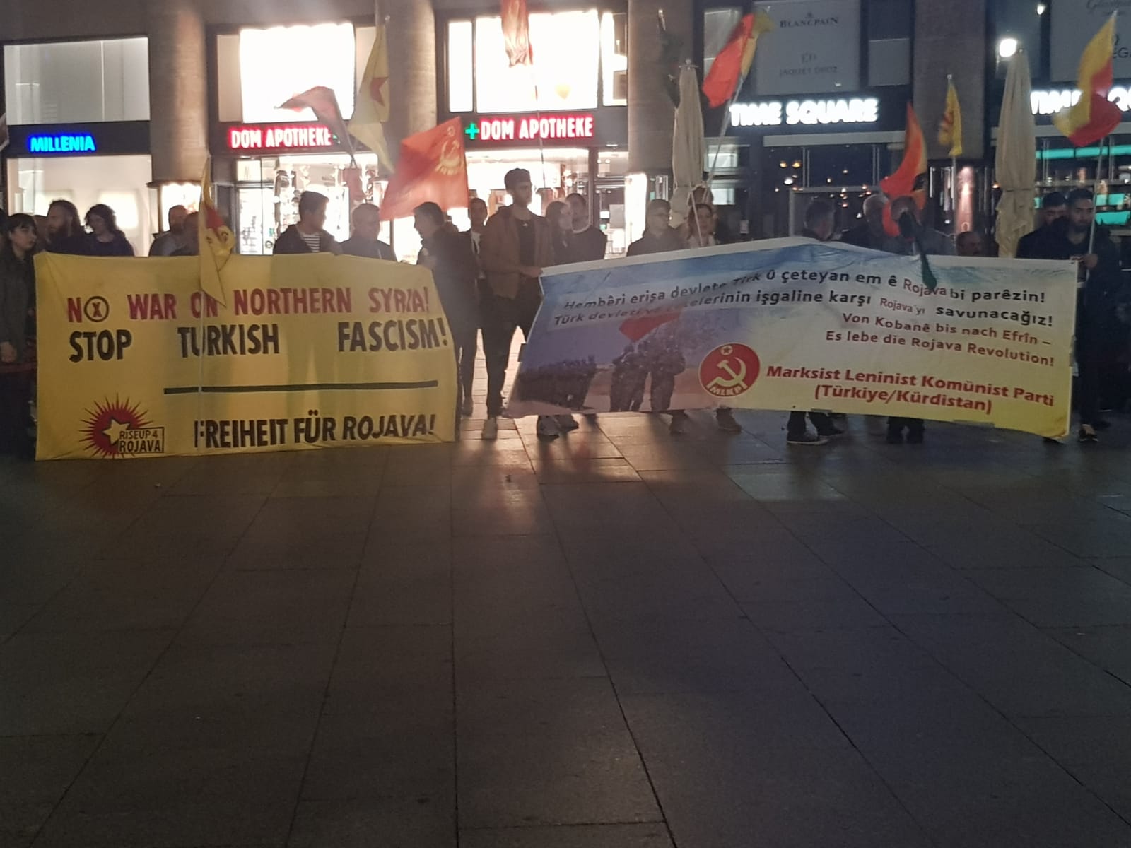 Köln TCŞ ve JCA aktivistleri hamleyi yaymak ve işgalci saldırıları durdurmak için Köln merkez tren istasyonunda 14 Ekim pazartesi günü beş günlük çadır eylemi başlattı. Gençler, çadır eyleminin yanı sıra yürüyüşler, paneller düzenleyerek işgalci Türk devletinin Rojava’da gerçekleştirdiği katliam ve işlediği savaş suçlarını tüm dünyaya göstereceklerini belirttiler.