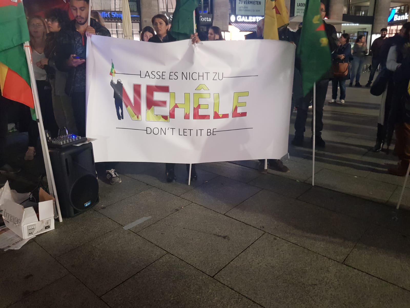 KÖLN – Faşist Türk devletinin Rojava’ya işgal saldırılarının başlamasıyla TCŞ ve JCA tarafından ilan edilen ‘Nehêle – İzin Verme!’ eylem hamlesi çerçevesinde Kürt gençlerinin eylemleri devam ediyor.