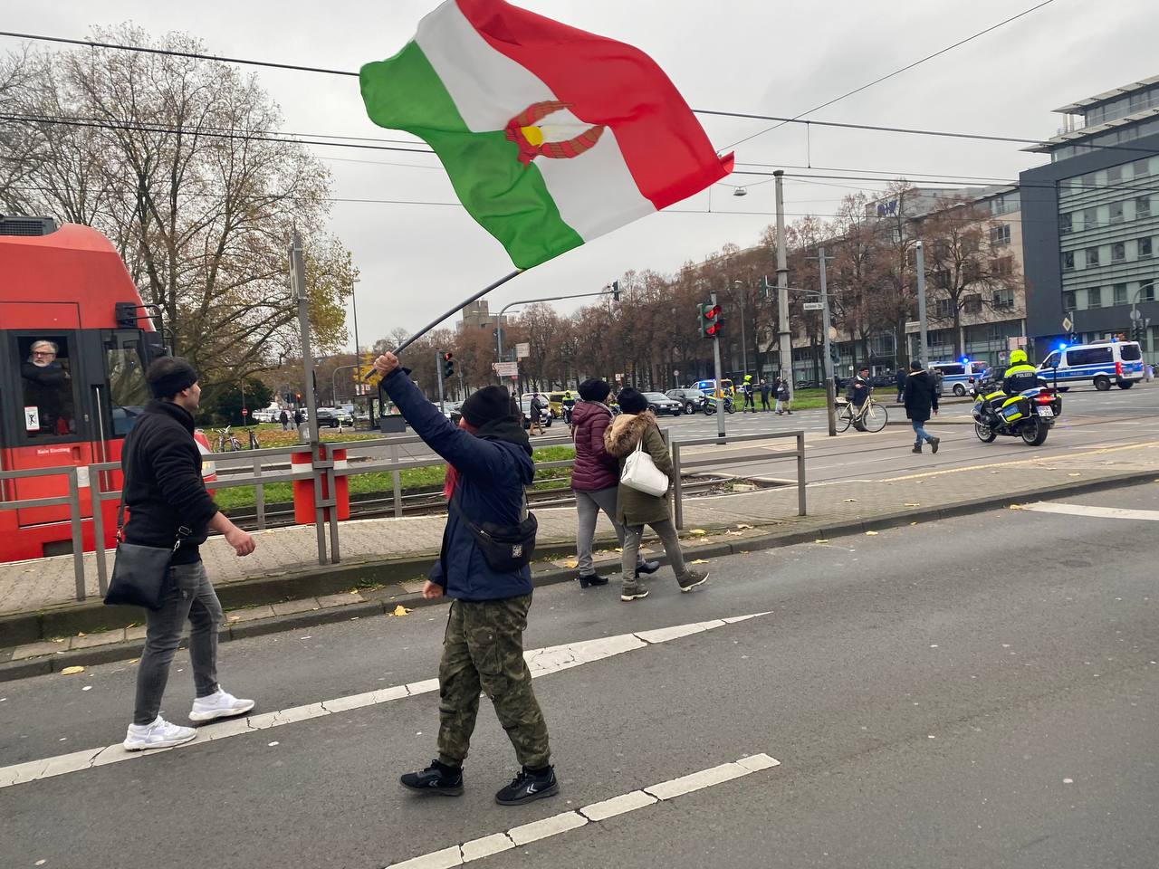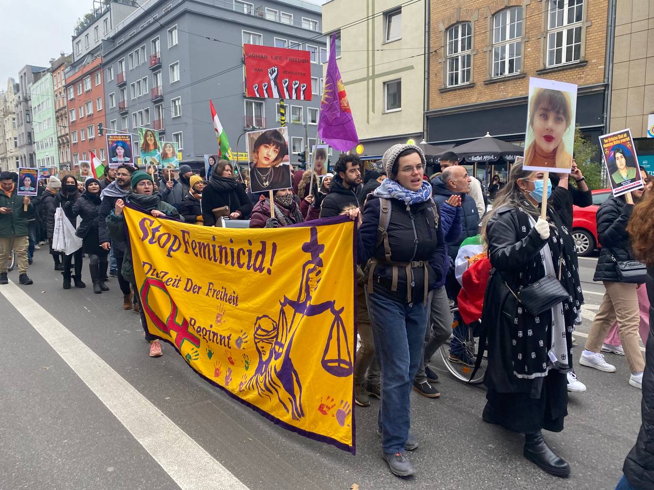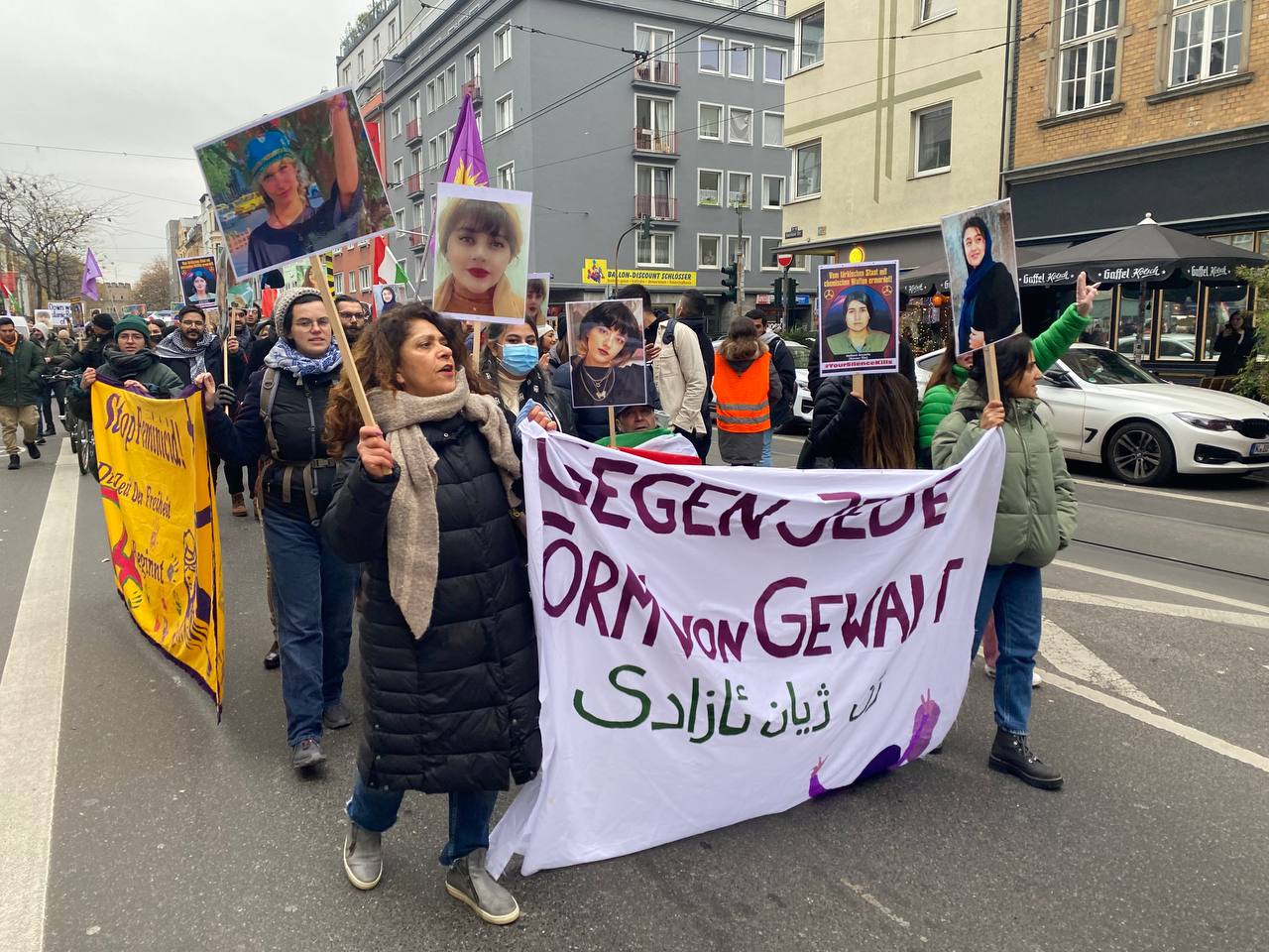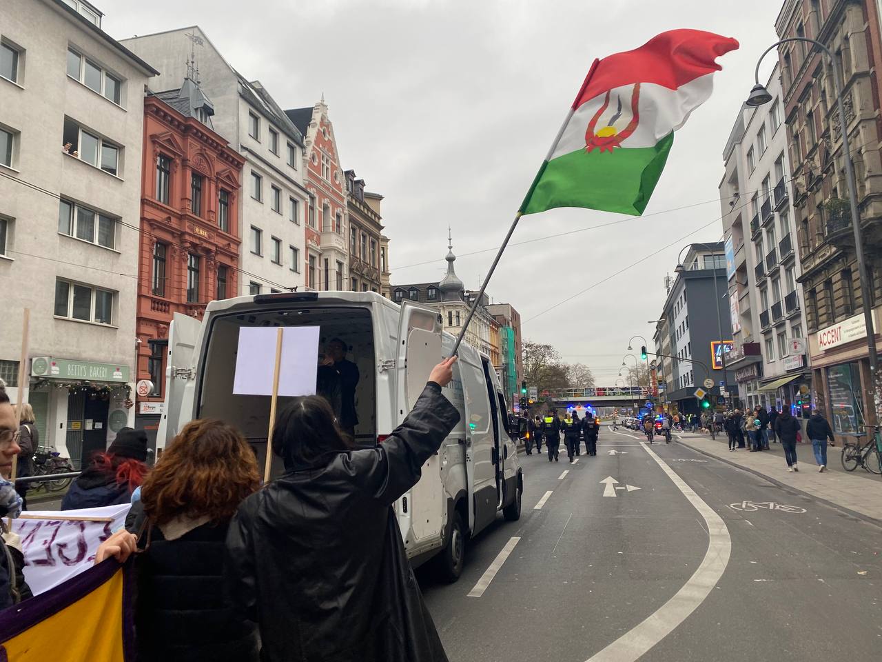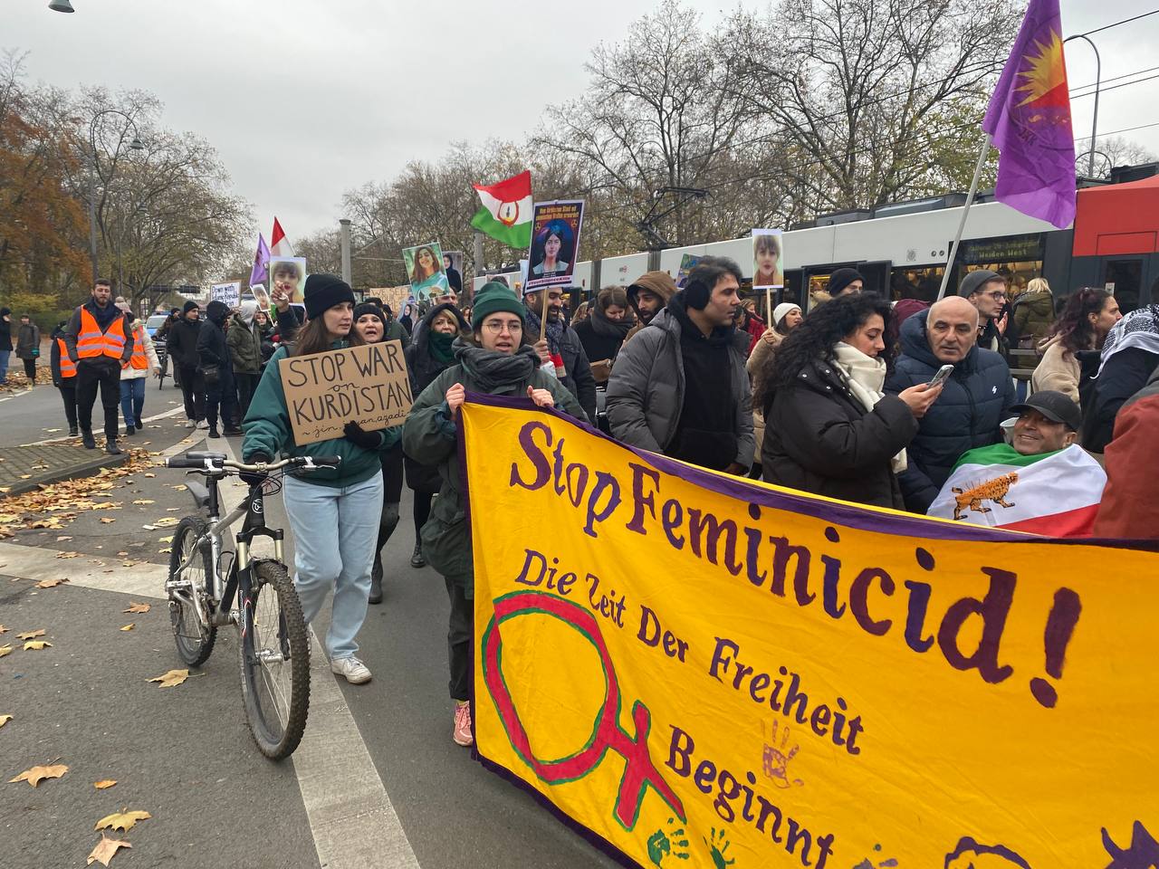 Yürüyüş Köln Aachener Weiher ‘da başladı. Yürüyüş başlamadan önce bir açılış konuşması yapıldı. Kürt genç kadını Jina Emini katledildikten sonra başlayan serhildanlarda bir çok genç kadının katledilmesinin kabul edilmez olduğu vurgulandı ve aynı zamanda gelişen serhildanlara dikkat çekildi.