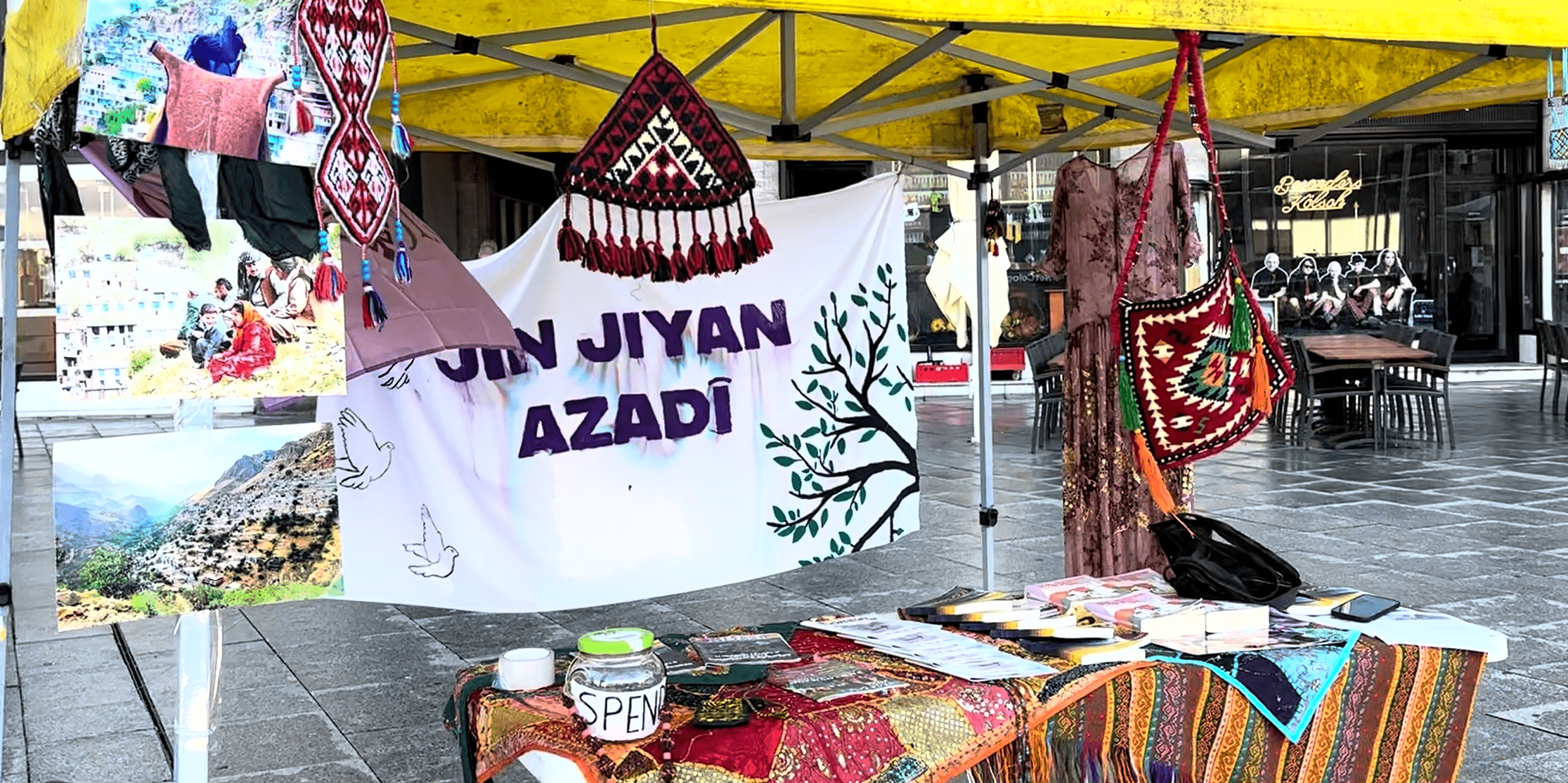 Genç kadınlar stantı ziyaret eden insanlara Rojhilat kültürünü ve tarihini anlattılar. Ayrıca “Jin Jiyan Azadî” hareketinden ve Kürdistan Kadın Özgürlük Mücadelesi’nden bahsettiler.