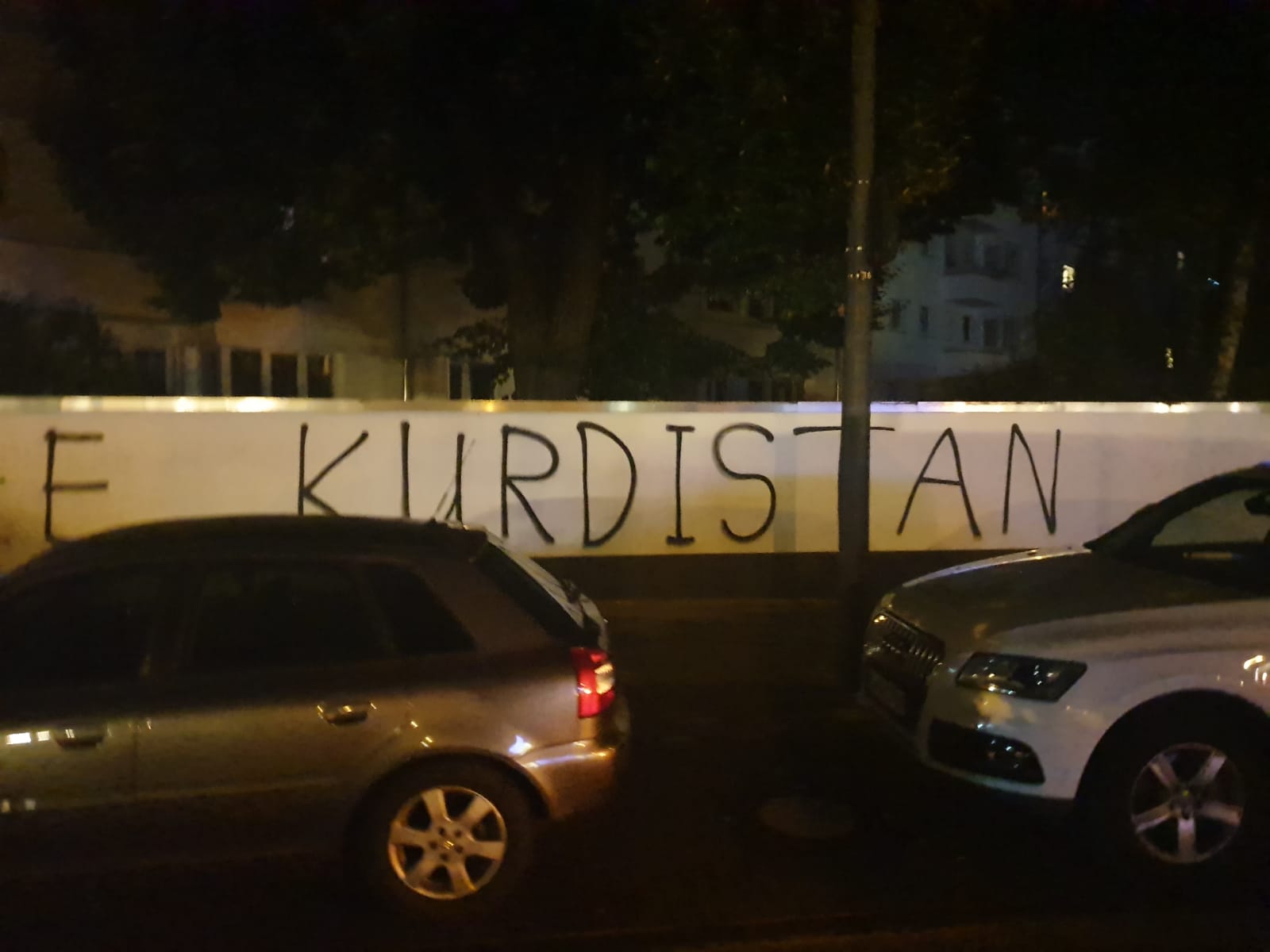 Gençler çeşitli dillerde “Rojava’yı savun”, “Yaşasın Rojava”, “Özgür Kürdistan”, “Yaşasın Rojava direnişi”, “Kürdistan’da savaşa hayır, Rojava’yı savun” ve “Yaşasın PKK” gibi sloganları yazdı.