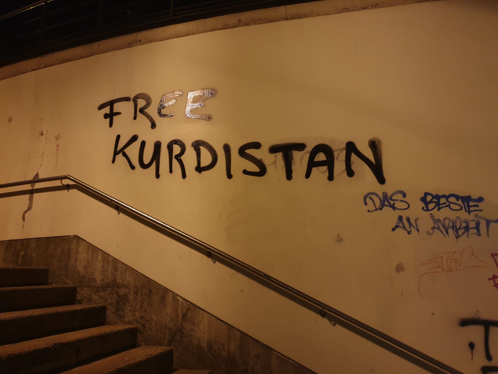 Almanya'nın Köln şehrinde bulunan birçok tren istasyonuna Kürt gençleri tarafından yazılamalar yapıldı. Yazılamalarda Türk sömürgeciliğinin Rojava'ya yönelik işgal saldırılarına dikkat çekildi.