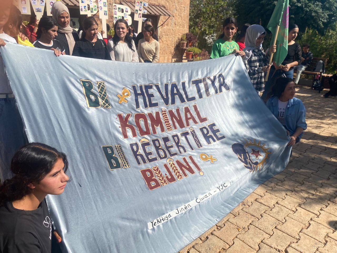 KOBANÊ- Kuzey ve Doğu Suriye Genç Kadınlar Birliği, “Rêhevaltiya Komînalist bi Rêber APO re Bijî!” sloganıyla dört aylık “Kom Bibe!” kampanyasını başlattı. Kampanya, Önder APO’nun 27 yıllık esaretine karşı kadınların öncülüğünde “Barış ve Demokratik Toplum” sürecini güçlendirmeyi ve komünal yaşam çağrısını büyütmeyi amaçlıyor.