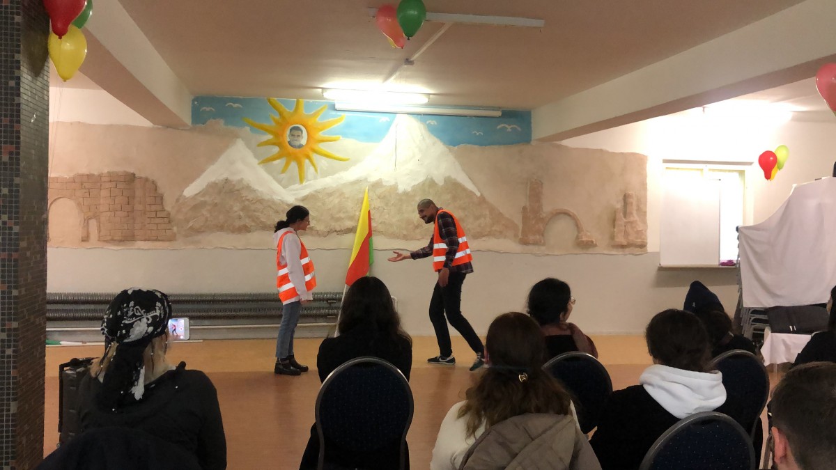 TCŞ ve TekoJIN Bielefeld tarafından Demokratik Kürt Toplum Merkezi’nde her ay düzenlenen kültür gecesinde bugün Ş. Barîn Kobanê Gençlik Komünü kültür komisyonu üyeleri tarafından ‘Yürüyüş’ isimli bir skeç oynandı. Toplum merkezinin salonu tamamen dolarken, etkinlik izleyiciler tarafından ilgiyle izlendi.