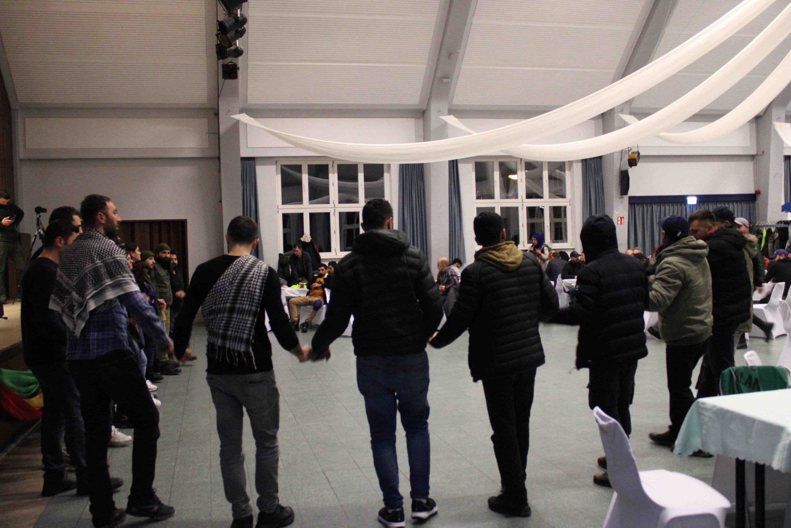 Gençler mitingden sonra tren ile Saarbrücken’de bir salona geçti. Salon’da bir konser düzenlendi. Konsere Sanatçı olarak Hozan Cömert, Hozan Berbang ve DJ Pehlivan katıldı. Bunun yanı sıra Saarbrücken cocuk korosundan Botan’da etkinliğe katıldı. Konuşmacı olarak Tevgera Jinên Êzidî adına Zêro Ezidî, Saarbrücken DKTM Eş Başkanı Dexîl Îbrahim ve Tevgera Ciwanên Şoreşger adına Mervan Botan katıldı.