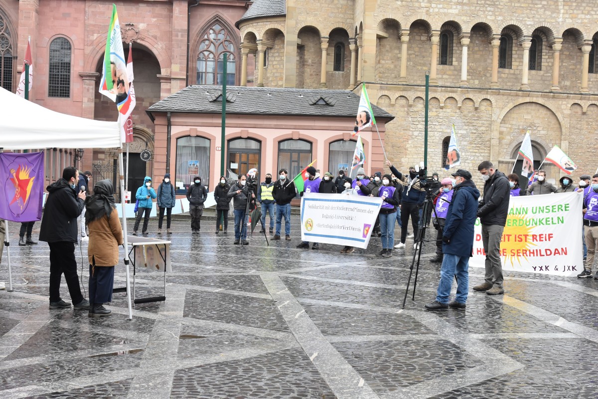Saat 14.30’da Mainz Domplatz’da bir araya gelen TCŞ, TekoJIN, YXK, JXK ve enternasyonalist gençler, eyleme devrim şehitleri anısına saygı duruşuna durarak başladı. Kurum temsilcilerinin yaptığı konuşmaların ardından eylem, YXK ve JXK’li aktivistlerin Boğaziçi direnişine destek amaçlı düzenledikleri panel ile devam etti. Türkiye ve Kürdistan’daki üniversitelerde okumuş ve politik faaliyetleri nedeniyle Avrupa’ya sürgün gelen gençlerin değerlendirmelerde bulunduğu panelde Boğaziçi ile başlayan ve üniversite sınırlarını aşan direnişle dayanışma mesajları verildi.