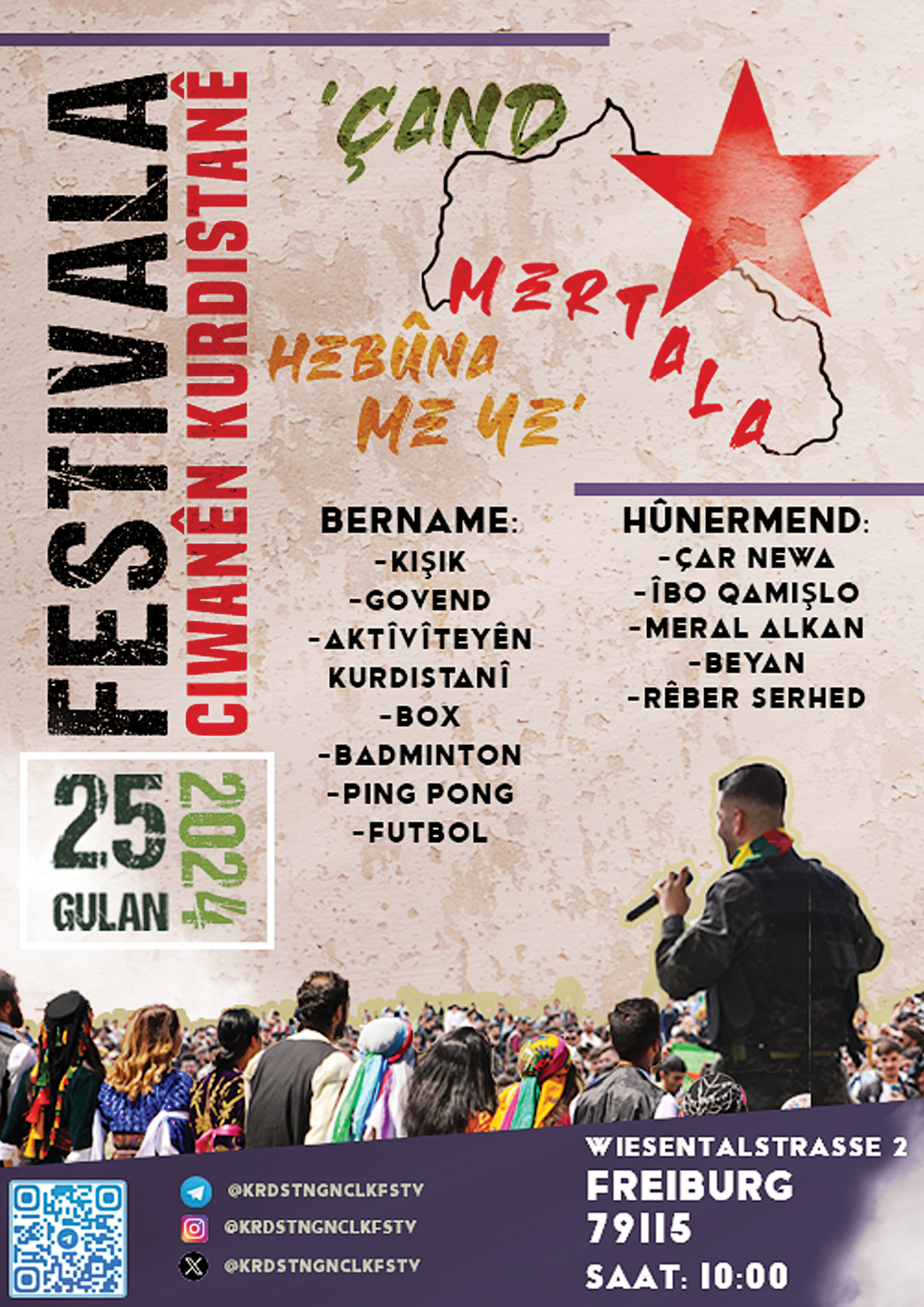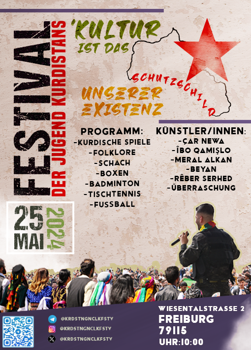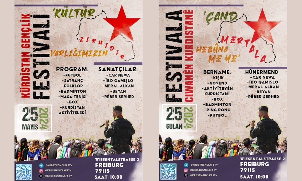 “Hazırlık komitesi adına 2024 yılında ‘Kültür Varlığımızın Zırhıdır’ şiarı ile gerçekleştireceğimiz Kurdistan Gençlik Festivaline öncellikle Avrupa’da yaşayan devrimci gençler başta olmak üzere tüm yurtsever halkımızı davet ediyoruz.”
