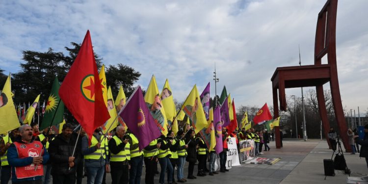 İran devletinin dört Kürt gencini idam etmesi İsviçre'nin Cenevre kentinde bulunan Birleşmiş Milletler (BM) Ofisi önünde Önder Apo'nun fiziki özgürlüğü talebiyle her çarşamba sürdürülen oturma eyleminde protesto edildi.