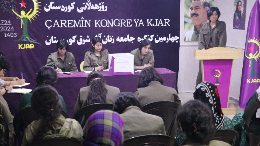 HABER MERKEZİ- Rojhilatê Kurdistan Kadınlar Topluluğu (KJAR), Kurdistan’ın her alanından gelen delegelerin katılımları ile 7-9 Mayıs tarihleri arasında 4. Kongresini gerçekleştirdi. 3 gün süren kongre, ‘Jin Jiyan Azadî Devrimi’nin başarıya ulaşması, kadın özgürlüğünü ve demokratik toplumu kaçınılmaz kılacaktır’ sloganı ile sona erdi. Kongre ve yürütülen çalışmalar, Şaho’da şehit düşen Arap savaşçılar Aryen Arê, Şîlan Bane ve şehit Rûken’e adandı.