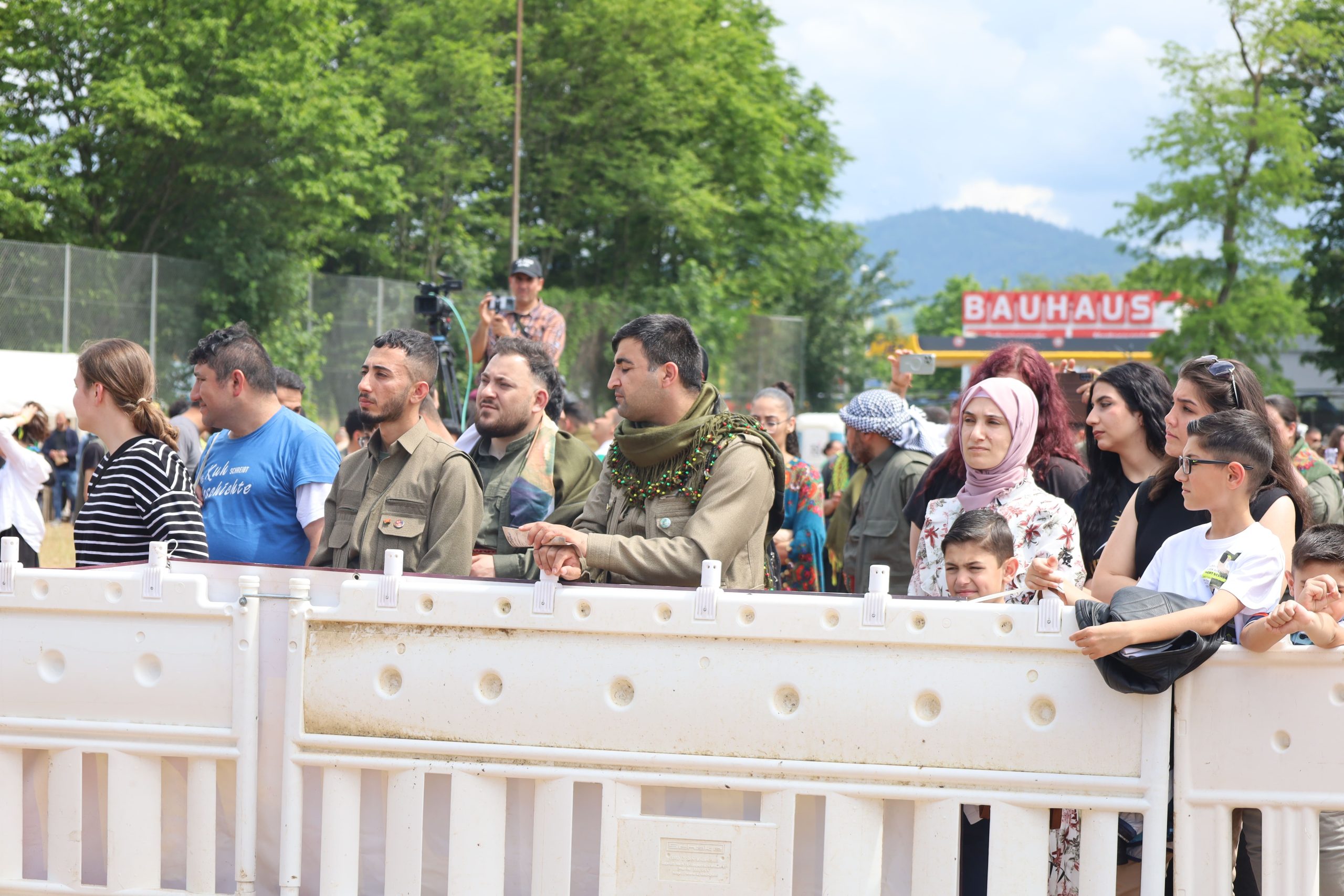 Almanya, Hollanda, Belçika, Fransa ve İsviçre gibi ülkelerden bir araya gelen yüzlerce genç Kurdistan Gençlik Festivali’nin başlangıcında sahneye doğru yürüyerek “Bijî Serok APO” sloganlarını hiç dinmeden dillendirdi.