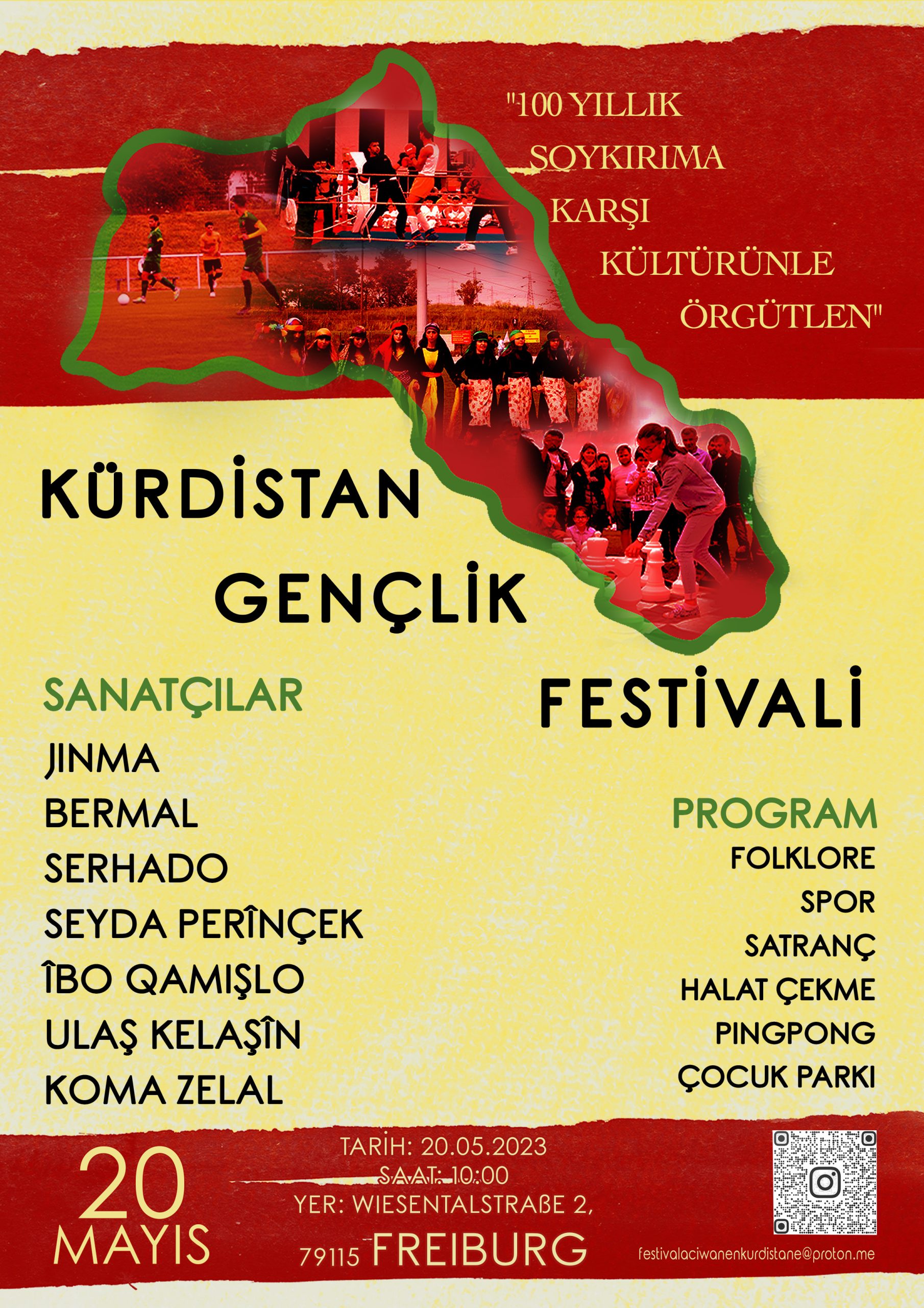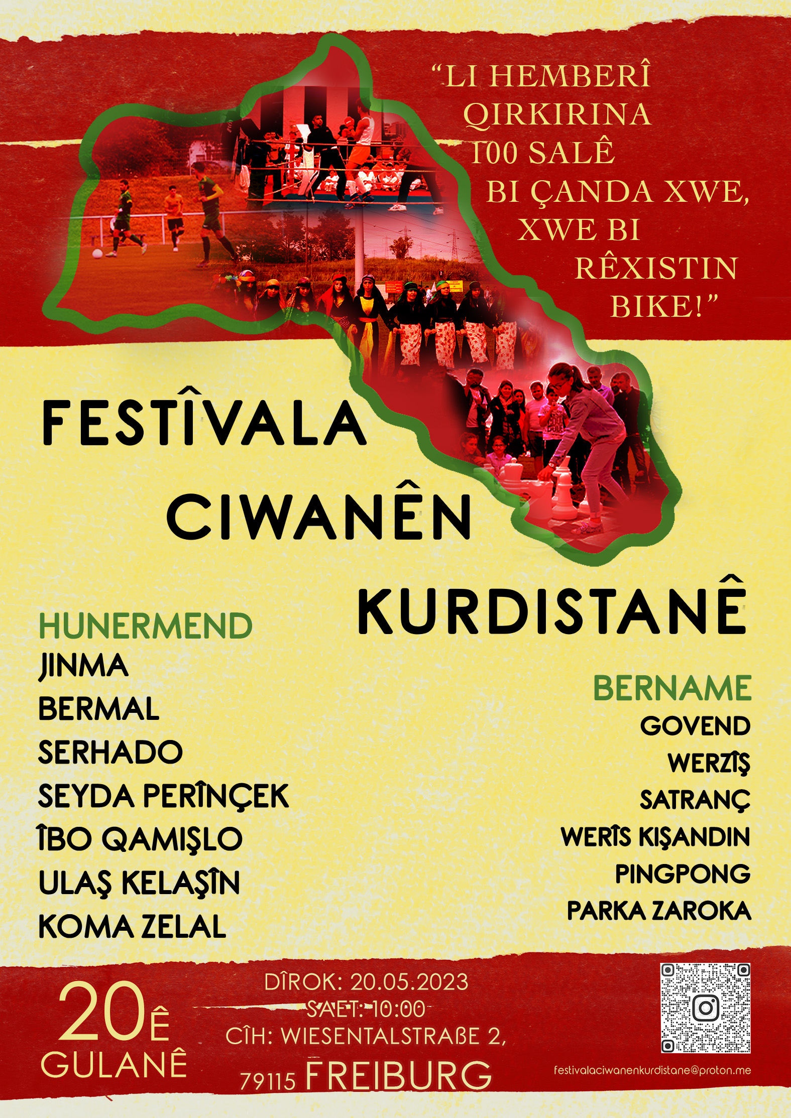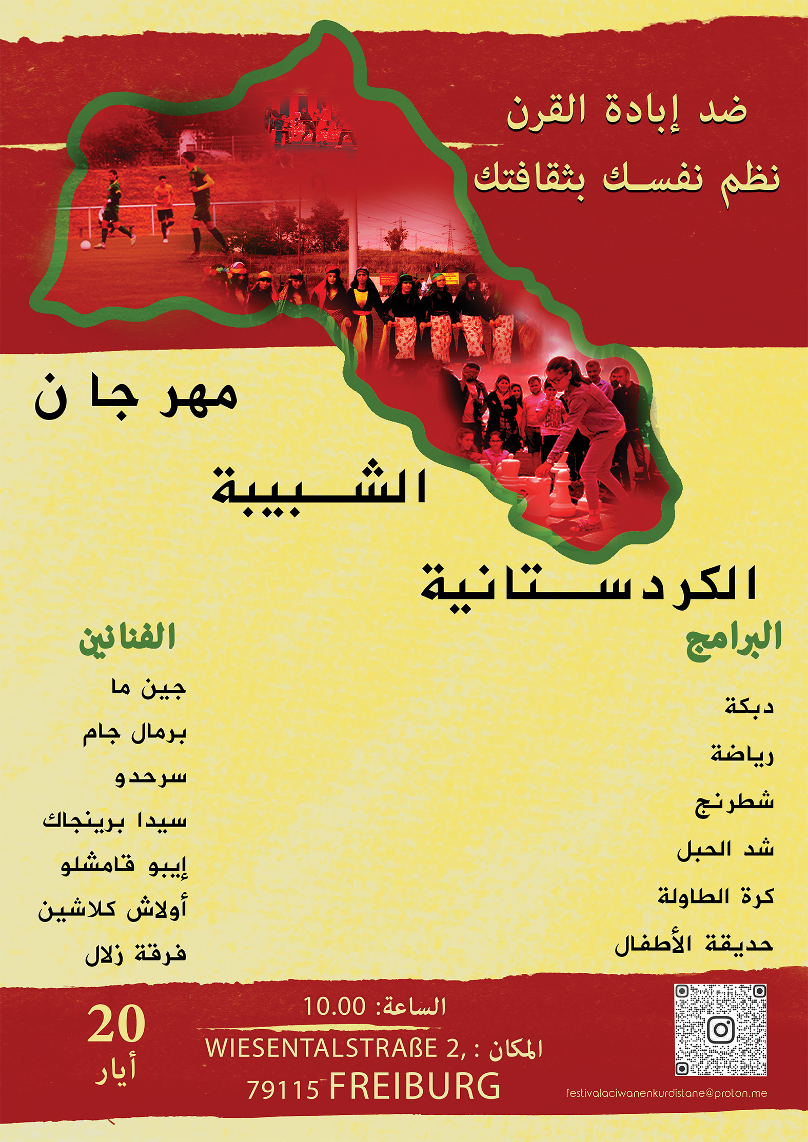 Çağrımız Avrupa’nın dört bir yanına savrulmuş Kurdistan Gençliğinedir. 20 Mayıs’ta Almanya’nın Freiburg kentinde buluşalım ve Avrupa’da olmamıza rağmen kültürümüzü yaşatalım!”