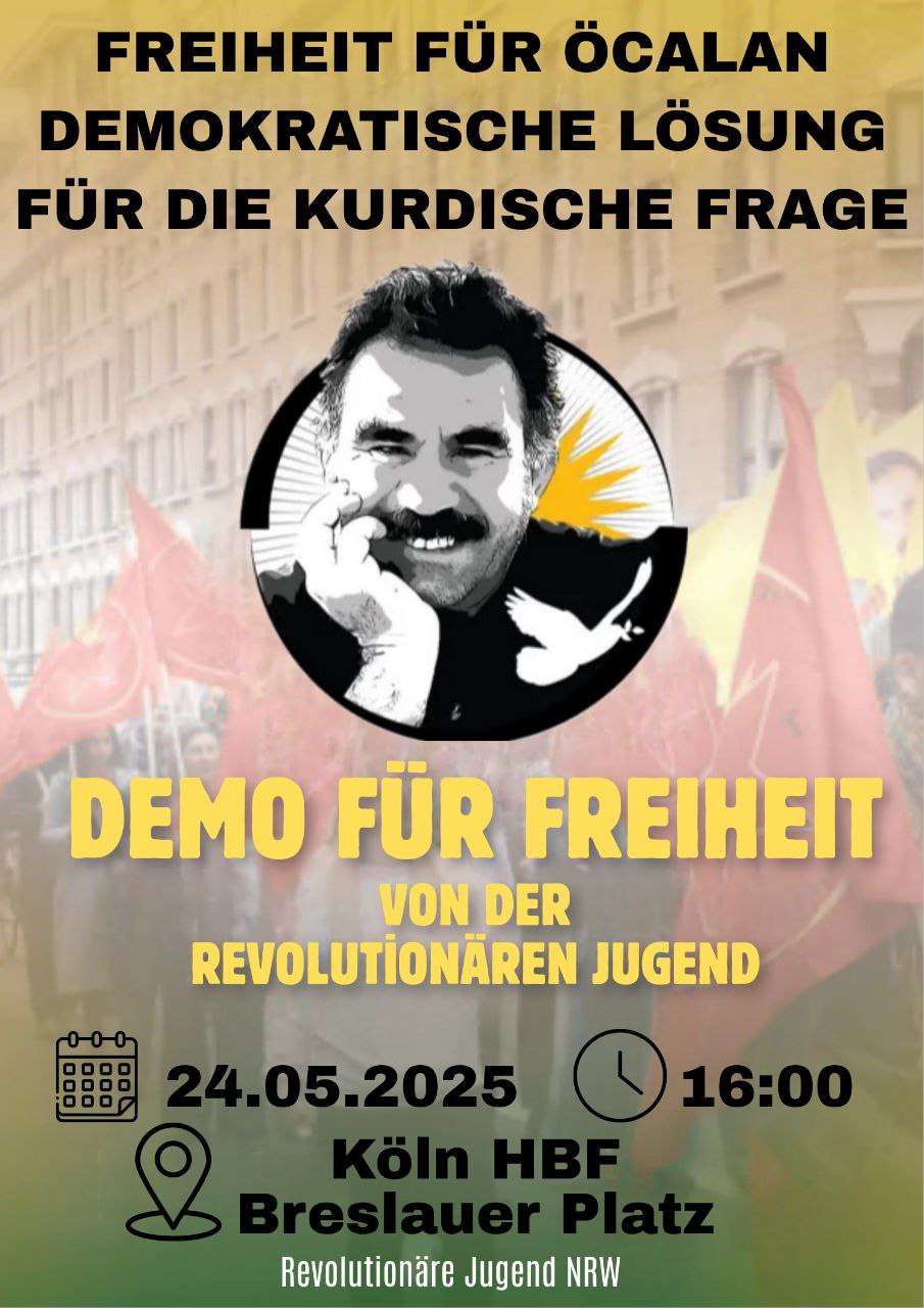 KÖLN- Almanya’nın Köln şehrinde TCŞ (Tevgera Ciwanên Şoreşger) Üyesi Gençler 24 Mayıs Saat 16:00 da Köln Hauptbahnhof (Breslauer Platz) ta bir araya gelip yürüyeşe başlayacaklarını bildirdi.