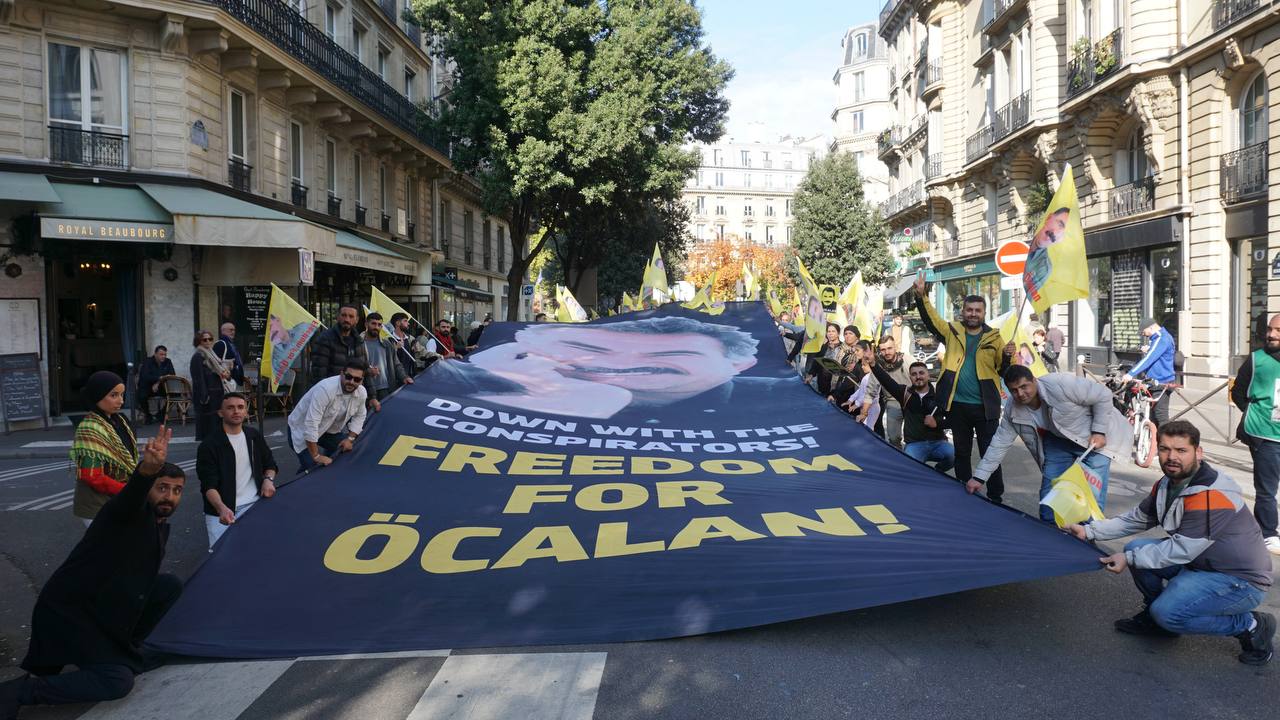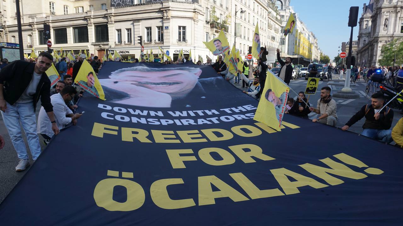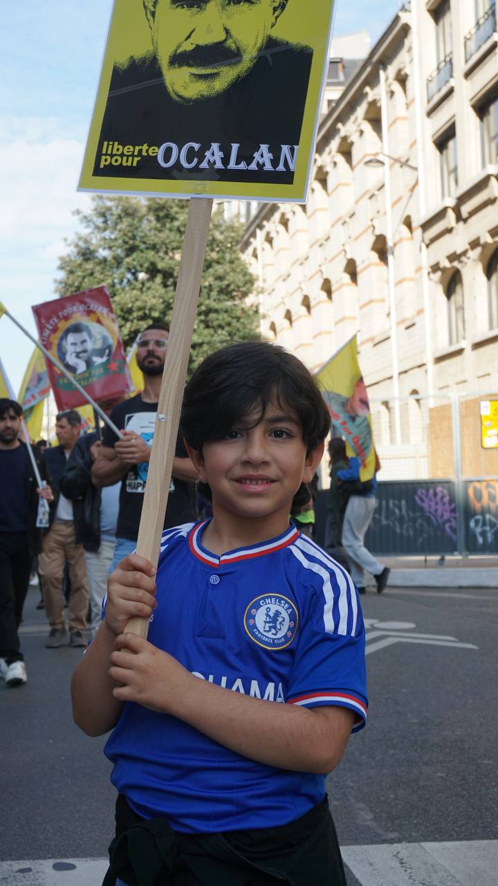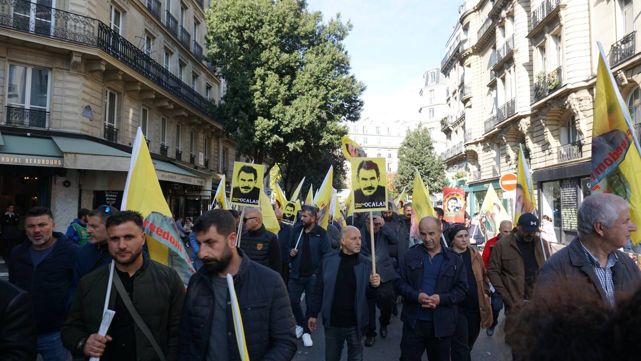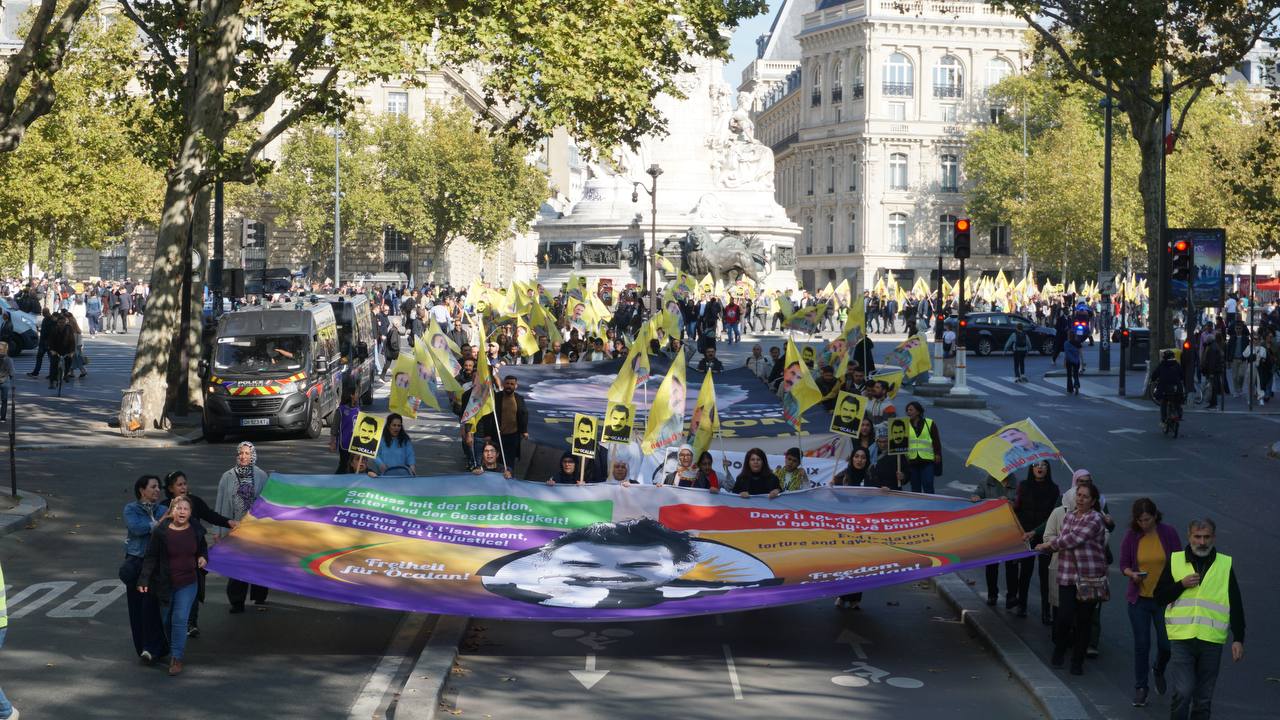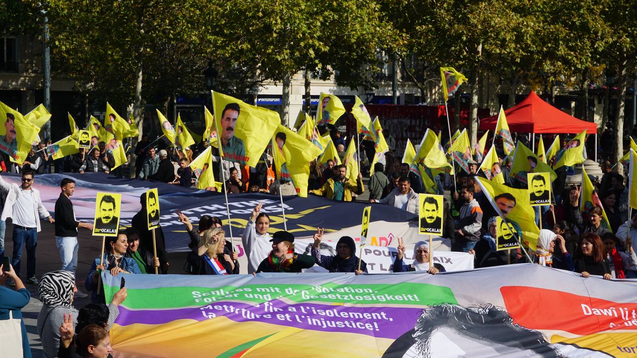 Sokaklarda “Bijî Serok Apo”, “Jin, Jiyan, Azadî” “Ciwan fedaiyên Rêber APO’ye” “libèrez Öcalan ve “Solution politique pour le Kurdistan” sloganları yankılandı.