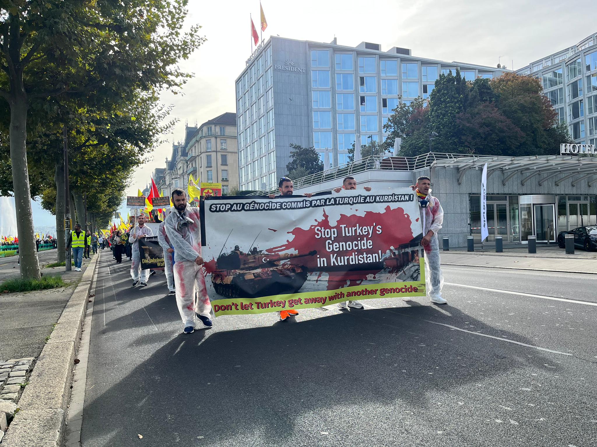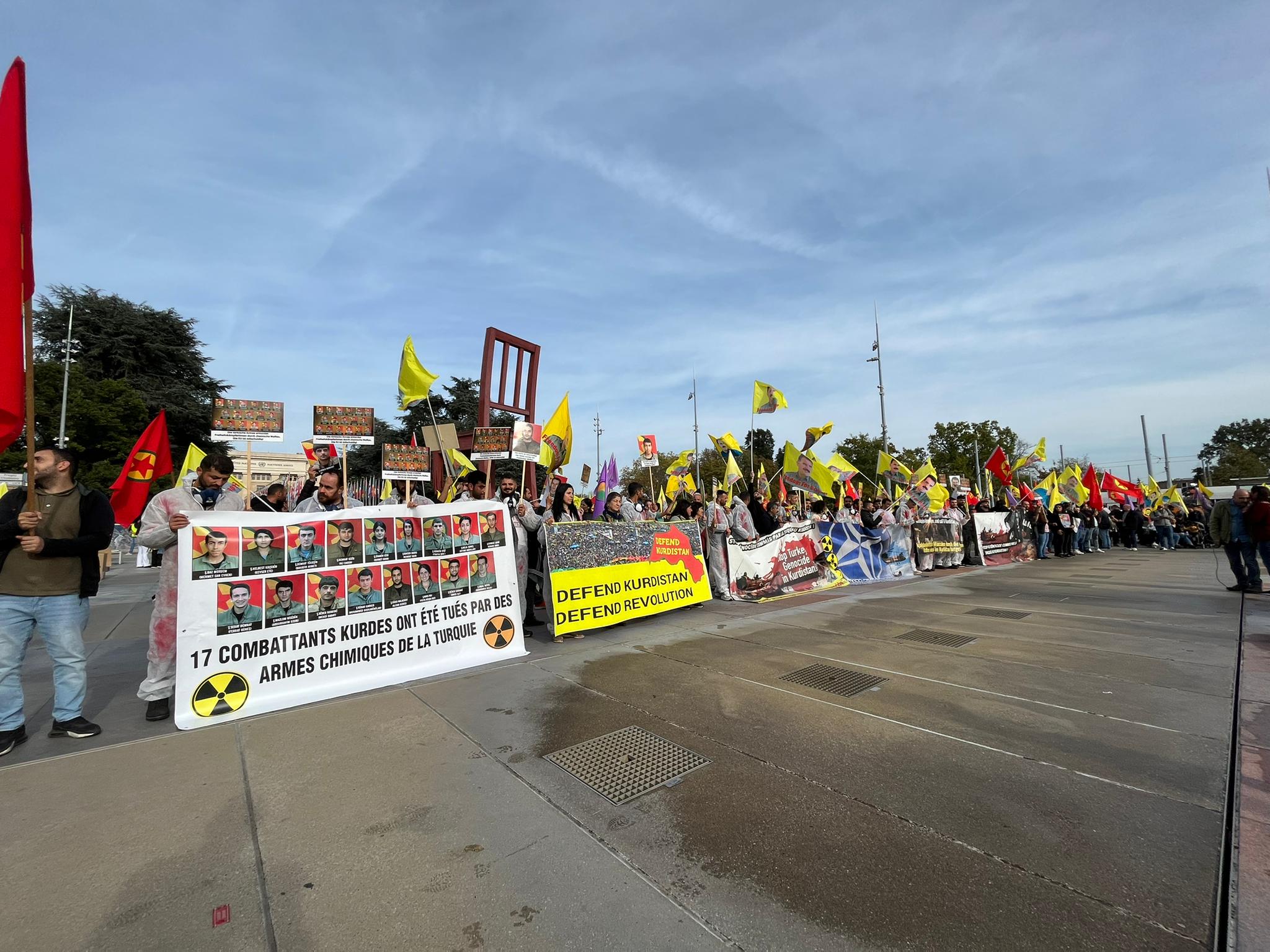 CENEVRE –Kürdistanlılar ve dostları bugünde işgalci TC devletinin Kürdistan Özgürlük Gerillası’na karşı işlediği savaş suçlarına karşı alanlardaydı.
