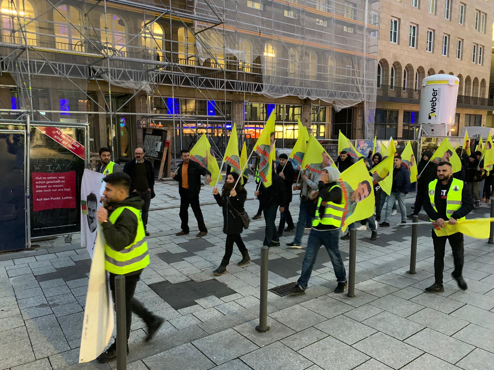 Stuttgart Lautenschlagerstraße’den yürüyüşe başlayan gençler, ellerinde Halklar Önderi Abdullah Öcalan’ın posterleri ve Almanca “A.Öcalan için Özgürlük” yazan bir pankart ile yürüyüş gerçekleştirdi. Yürüyüş boyunca gençler sık sık Almanca ve Kürtçe “Öcalan’a Özgürlük”, “Bijî Serok APO” sloganlarını attı.