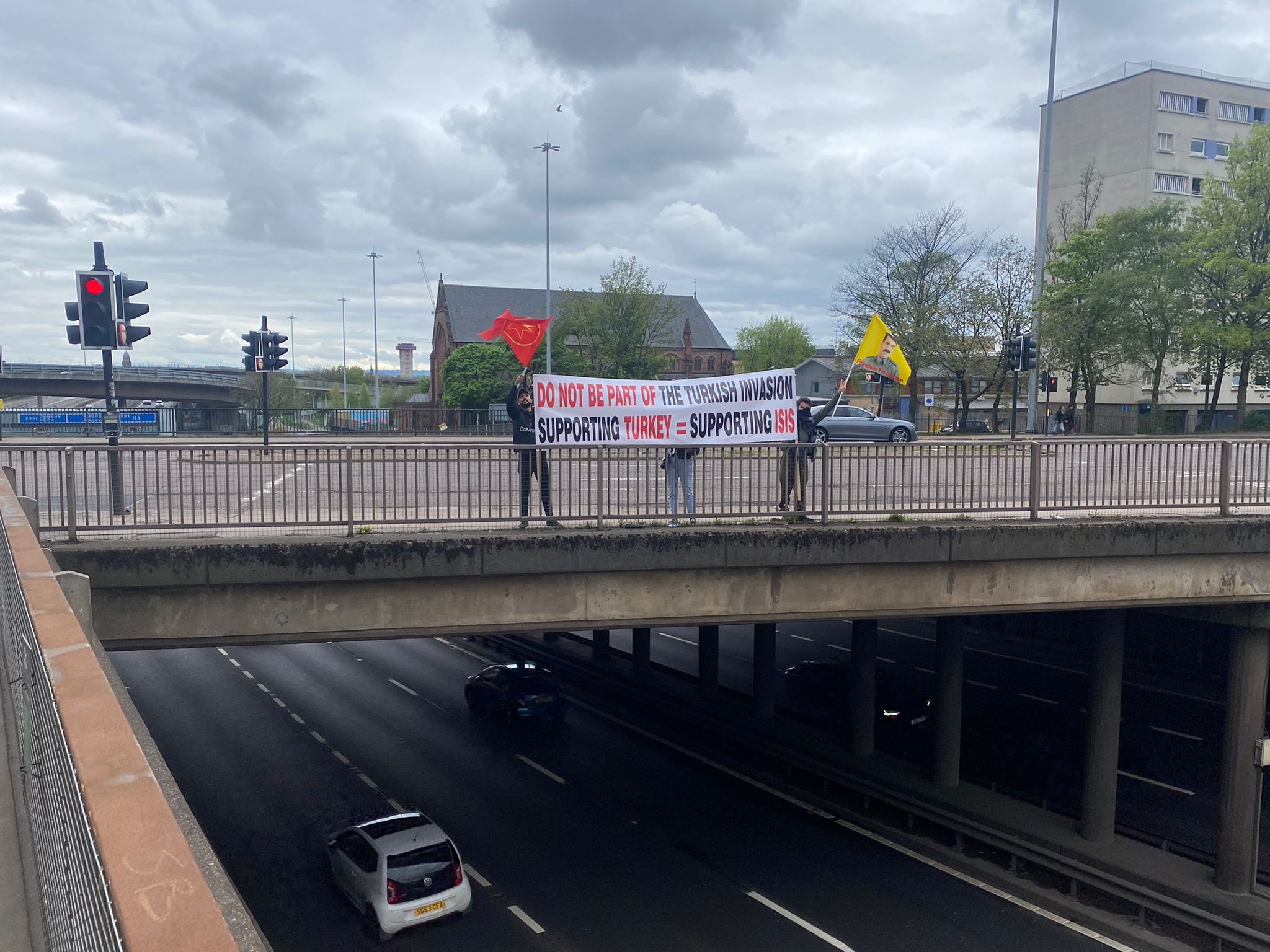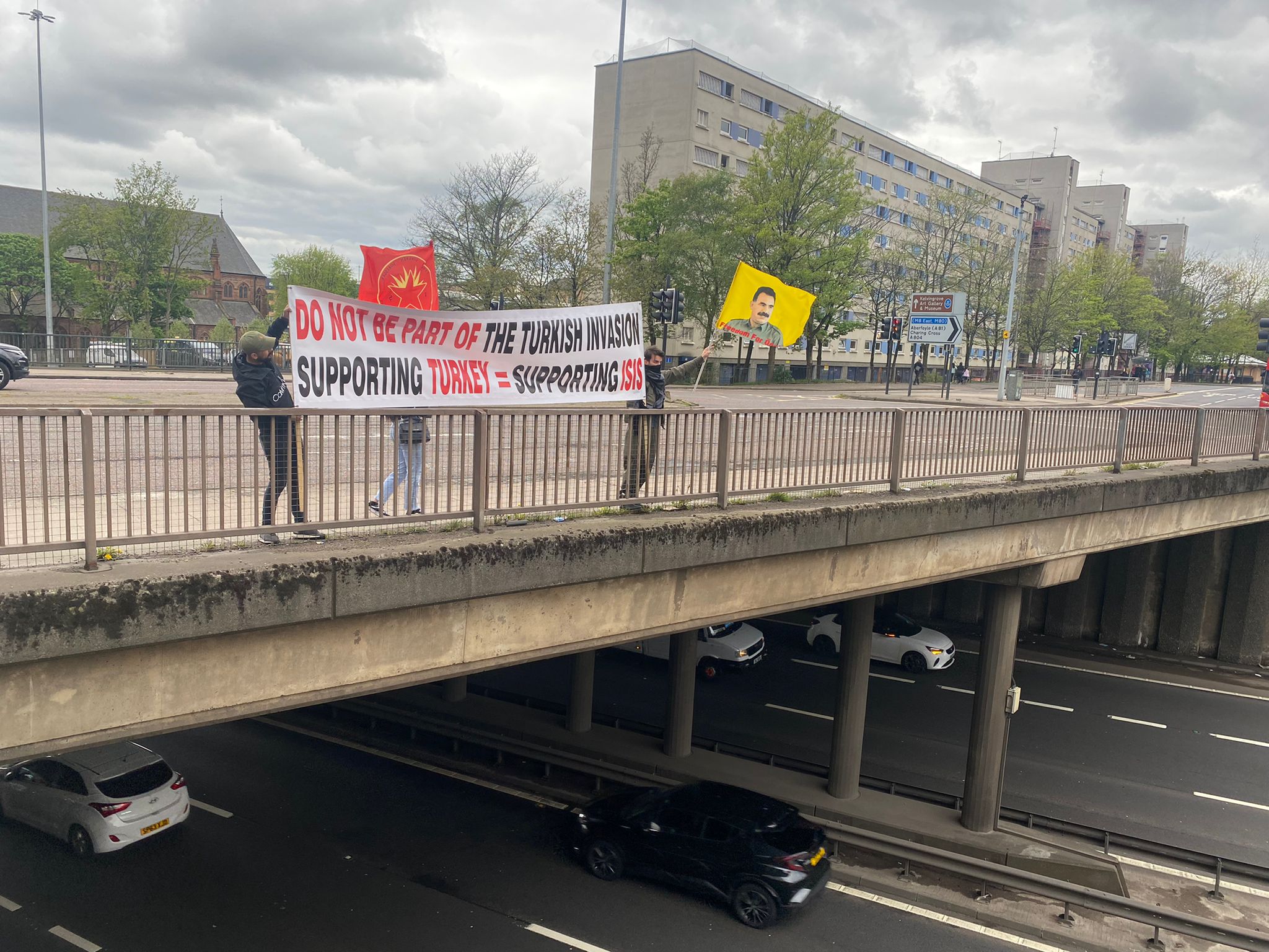 İSKOÇYA – İskoçya’da TCŞ aktivisti Kürt gençler işgalci Türk devletinin ve işbirlikçi KDP’nin 17 Nisan’da başlatmış olduğu saldırıları protesto etmek ettiler.