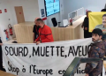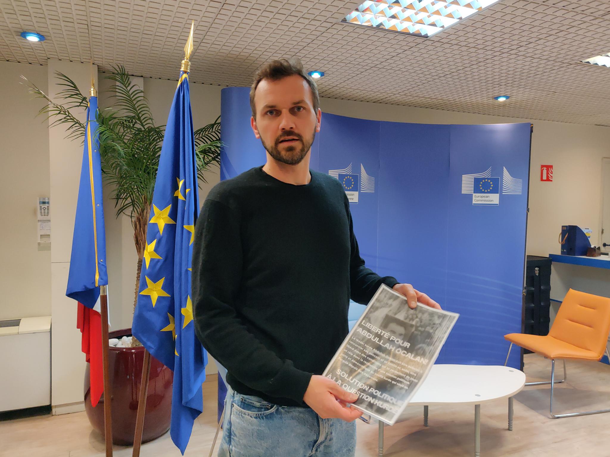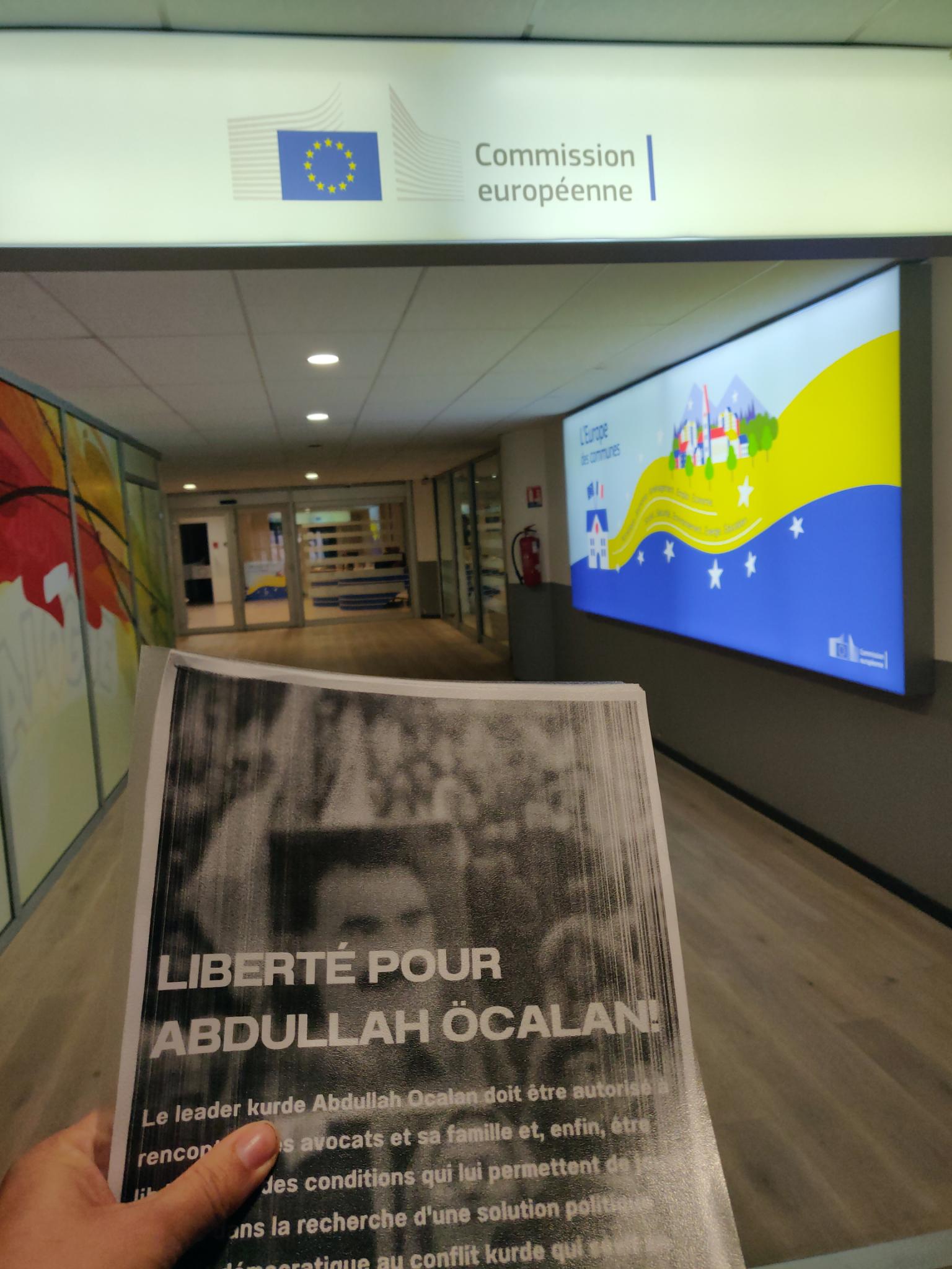 Avrupa Parlamentosu binası içinde pankart açan gençler Avrupa ve dünyada bulunan tüm kurumların bu işkenceye ortak olduğunu belirtip, İmralı işkence sisteminin son bulmasını istedi.