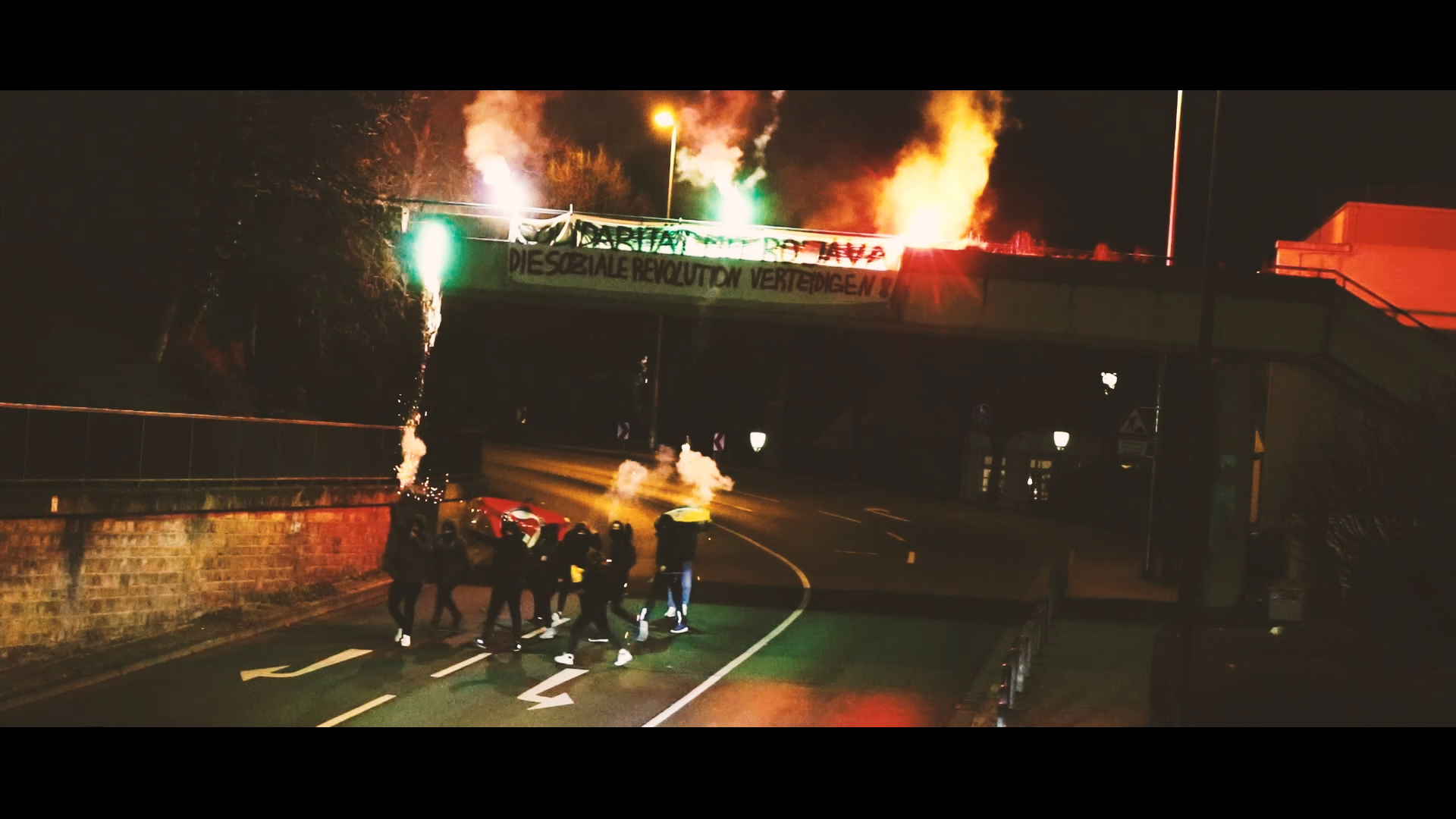 MAINZ – Bu akşam saatlerinde Almanya’nın Mainz şehrinde Kürt gençleri ve genç kadınlar Halklar Önderi Abdullah Öcalan’a uygulanan tecride karşı ve süresiz-dönüşümsüz açlık grevlerine destek amaçlı bir eylem gerçekleştirdi. Enternasyonalist gençlerin de destek verdiği eylemde Mainz şehrindeki işlek bir cadde üzerinde havai fişekler ve bayraklarla yola çıkan gençler trafiği kapattı. 20 civarında gencin katıldığı eylemde, Halklar Önderi Abdullah Öcalan’ın bayraklarının yanı sıra Antifa Enternasyonal bayrağı da taşındı ve eylem boyunca “Bijî Serok APO” sloganları atıldı. Gençlerin trafiği durdurduğu anda yolun üzerinde bulunan bir üst geçitte de büyük bir pankart açıldı ve çok sayıda renkli duman kullanıldı. Gençlerin açtığı 7 metrelik pankarta Almanca “Rojava ile Dayanışma – Sosyal Devrimi Savun” yazıldı.