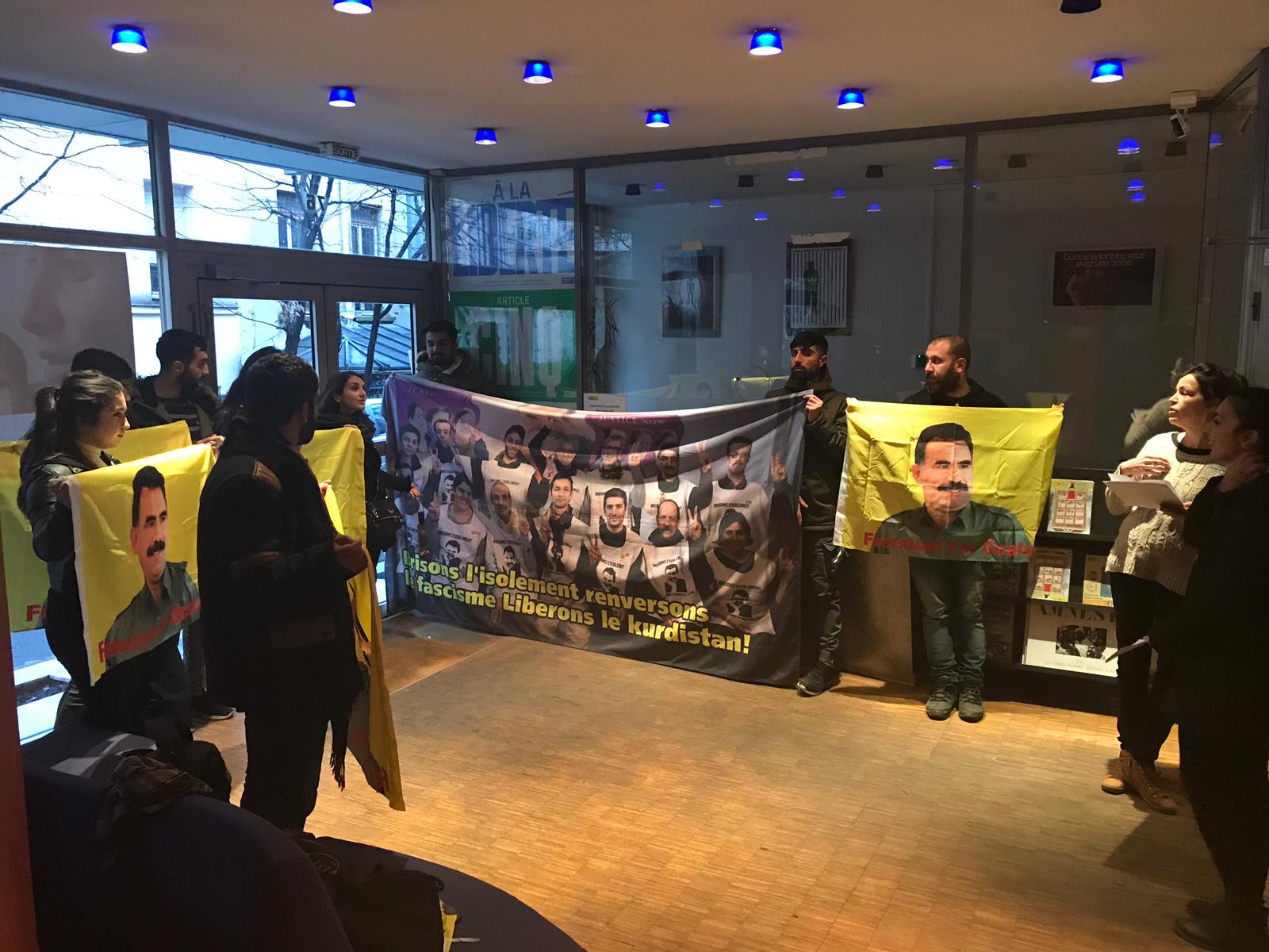 PARİS – Fransa’nın başkenti Paris’te yaşayan Kürt gençleri ve genç kadınlar bu akşam saat 17:30’da Uluslararası Af Örgütü’nde bir sivil itaatsizlik eylemi gerçekleştirdi. Gençler, Halklar Önderi Abdullah Öcalan’a uygulanan tecrit işkencesi ve bu tecridin sonlandırılması için Leyla Güven öncülüğünde 120. gününe giren süresiz-dönüşümsüz açlık grevi eylemlerine dikkat çekmek için eylemi düzenlediklerini açıkladılar. Gençler Af Örgütü’nün Paris temsilciliğine Halklar Önderi Abdullah Öcalan’ın bayrakları ve Strasbourg’daki süresiz-dönüşümsüz açlık grevindeki 14 eylemcinin fotoğraflarının bulunduğu bir pankartla girdiler. Af Örgütü’nde yapılan görüşmede tecrit ve açlık grevleri üzerine Fransızca hazırladıkları bir dosyayı veren gençler kurum temsilcisi ile uzun süren bir görüşme gerçekleştirdi. Görüşme sırasında temsilci Kürdistan’da yaşanan faşist uygulamalar ve son gelişmeler üzerine de bilgilendirme yaptı ve taleplerini aktardılar. Gençlerin talepleri şöyle: