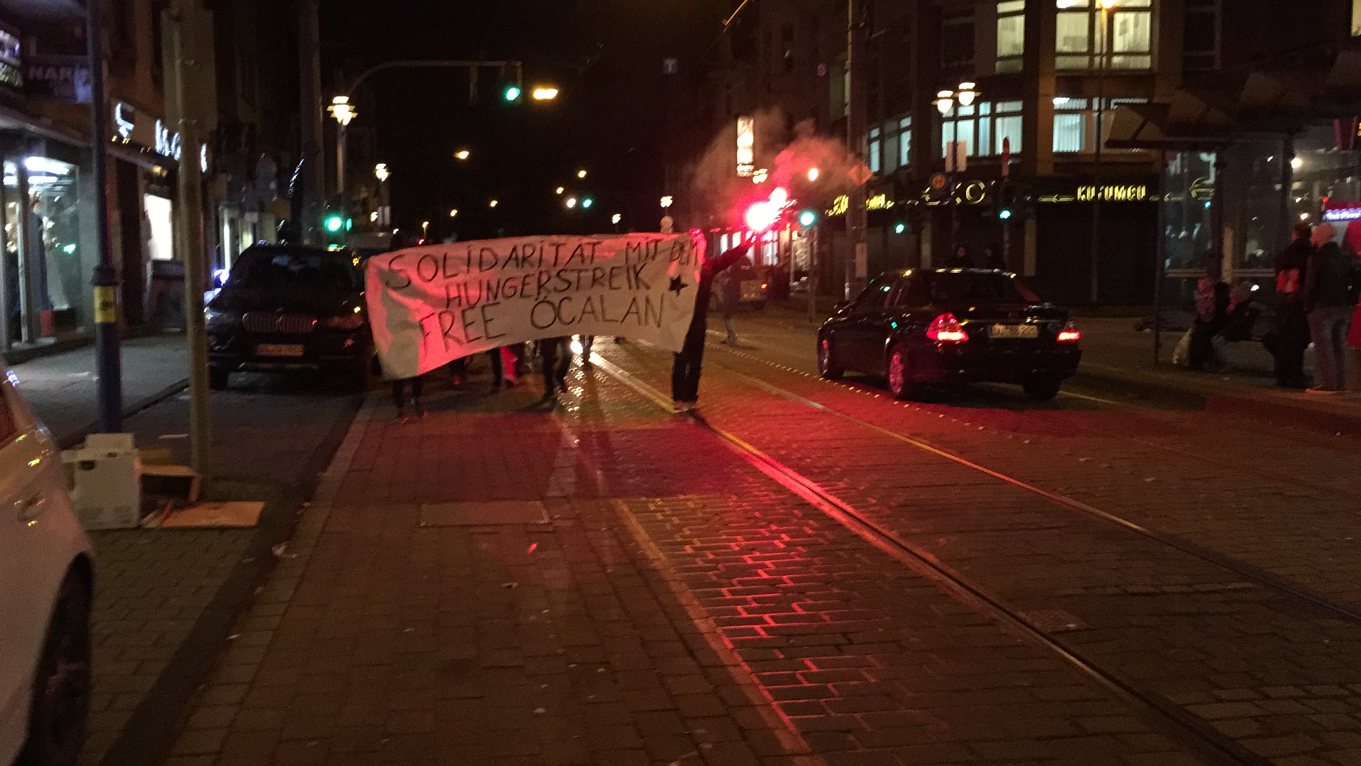 ALMANYA – Duisburg’da Kürt gençleri Halklar Önderi Abdullah Öcalan üzerindeki ağırlaştırılmış tecride karşı ve açlık grevi eylemini desteklemek amacı ile genç kadınlar öncülüğünde bir sivil itaatsizlik eylemi düzenledi.