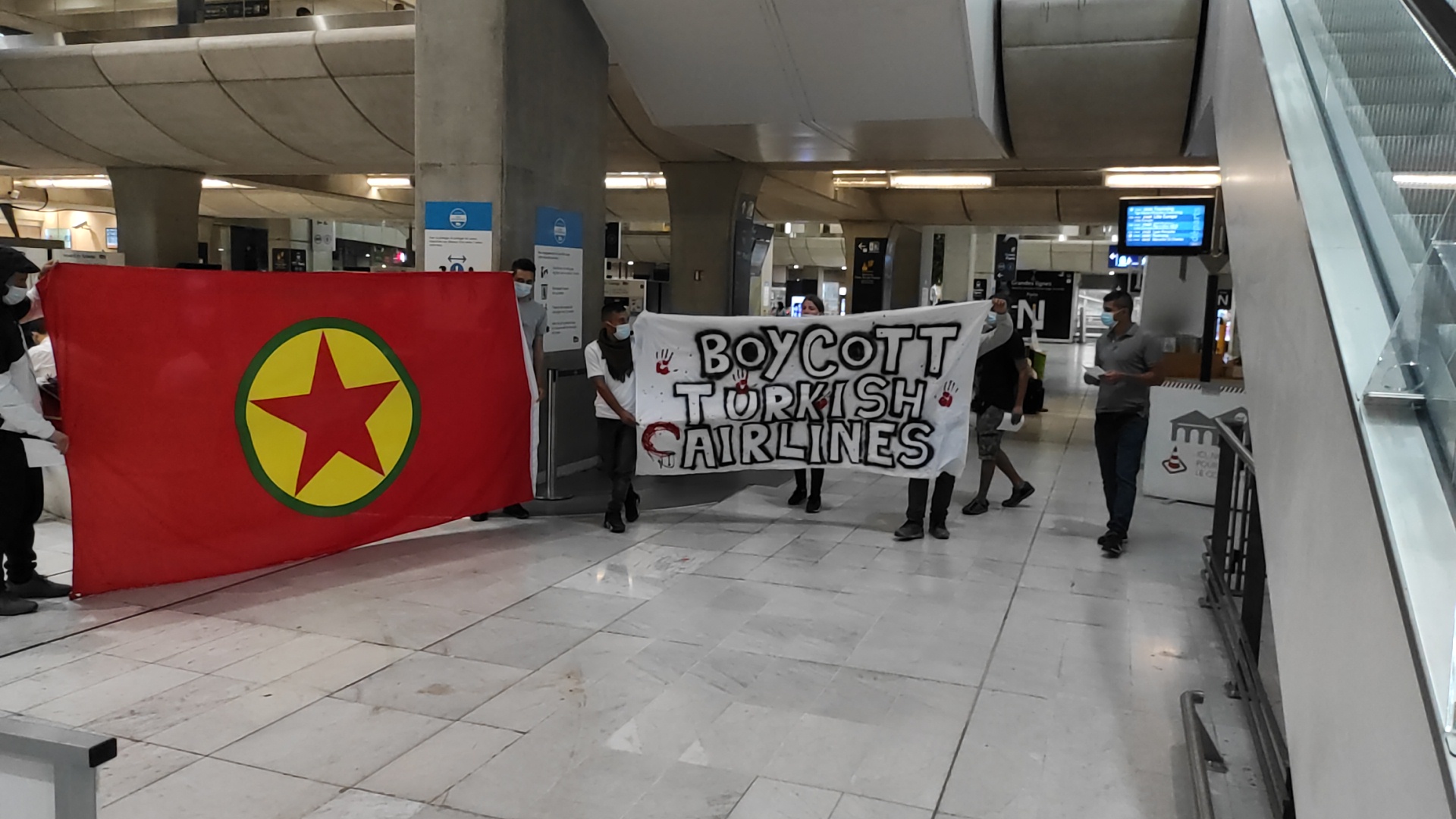 PARİS – Paris’te Kürt gençleri faşist Türk devletinin Kürdistan’daki soykırımcı işgal saldırılarını protesto etmek için havalimanının Türk Hava Yolları uçuşlarının bulunduğu bölümü işgal ettiler.