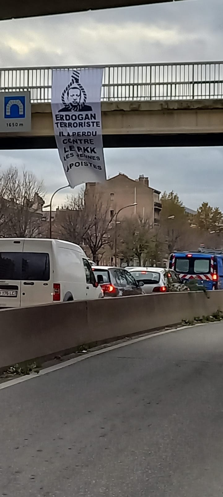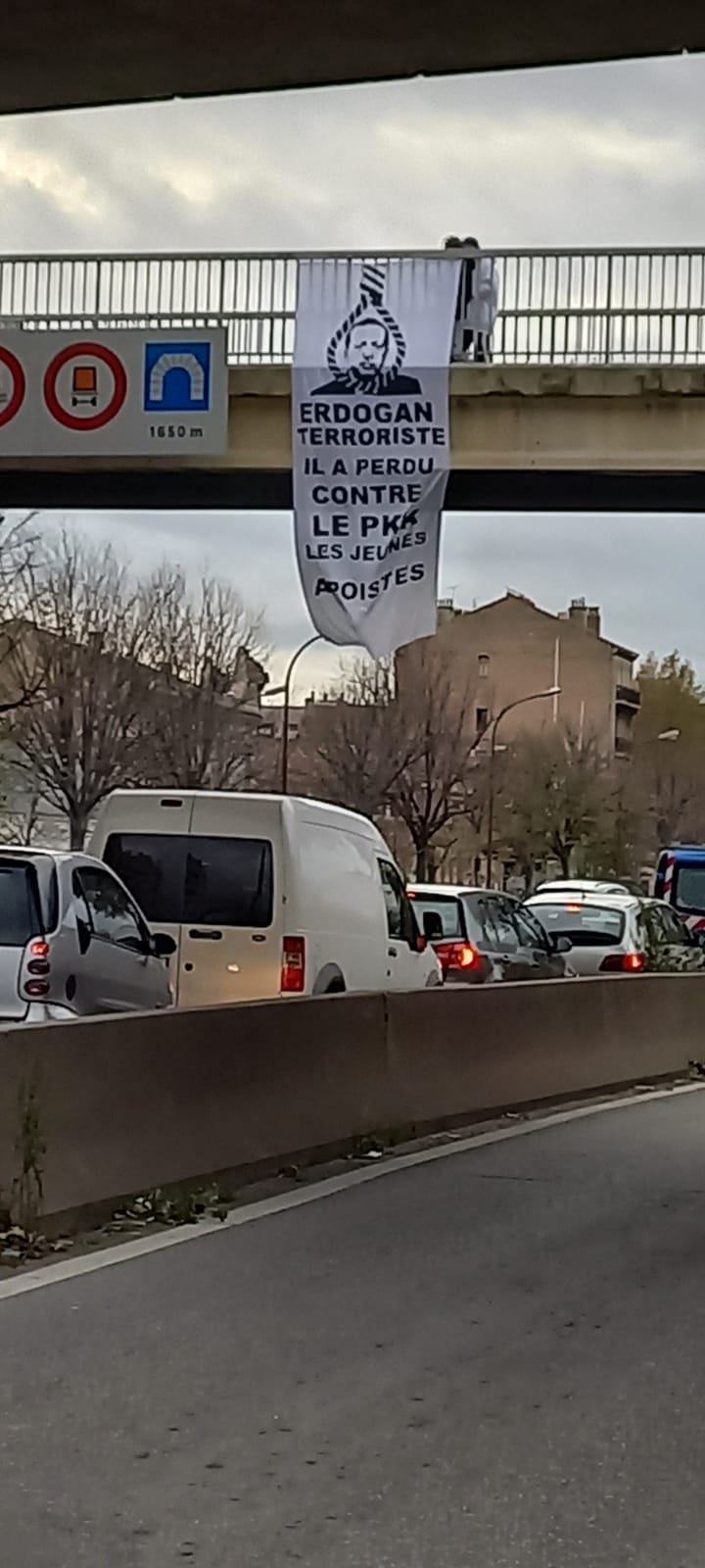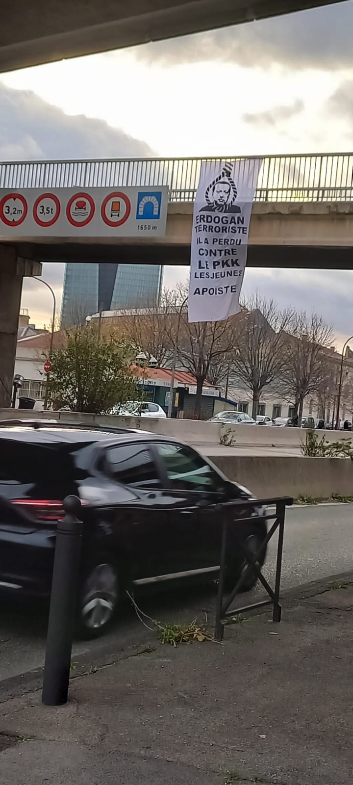 Akşam saatlerinde Kürt gençleri tarafından “Erdogan Terroriste” yazılı bir pankart asıldı. Gençler tarafından asılan pankart çevre halk tarafından çokça görüldü ve ilgi çekti.