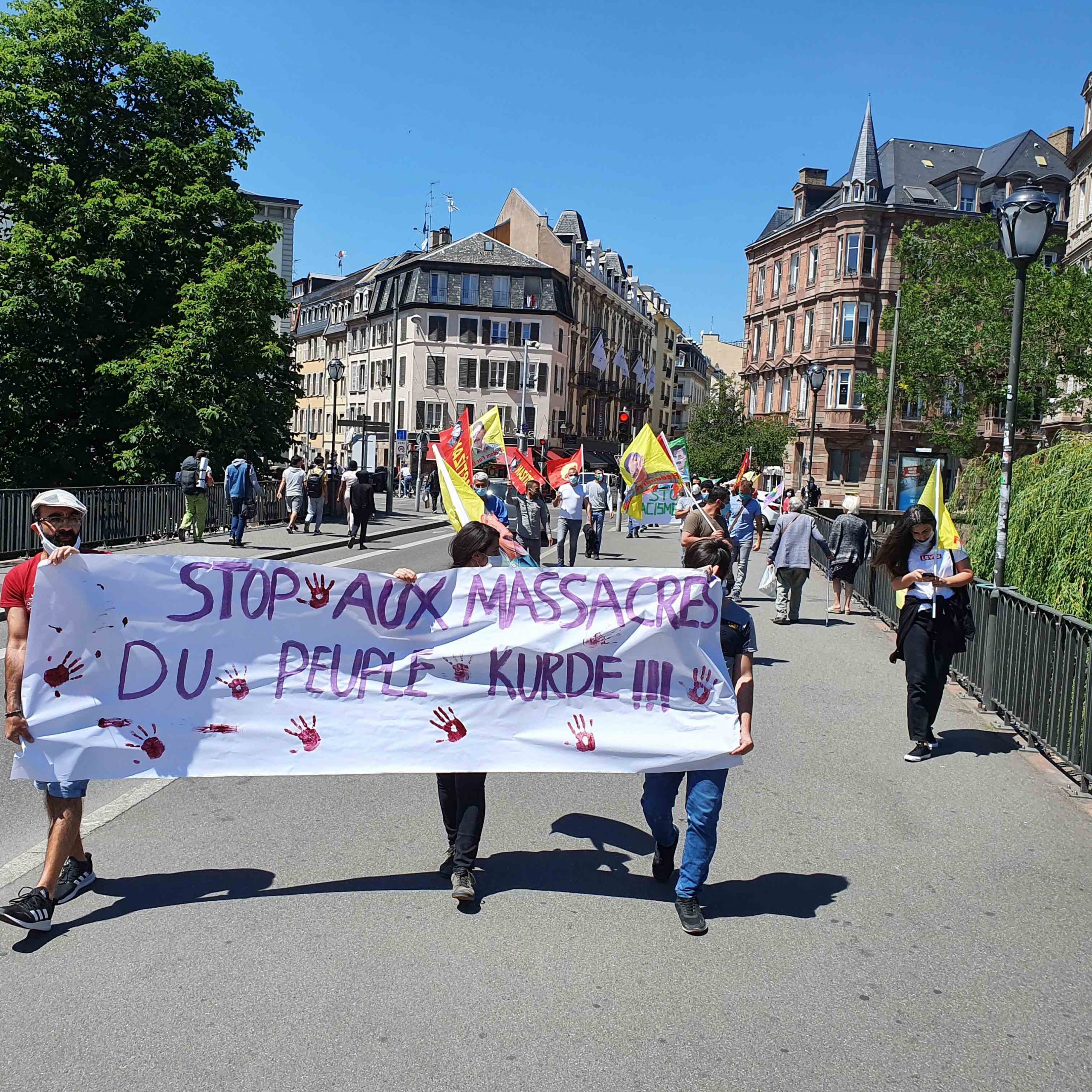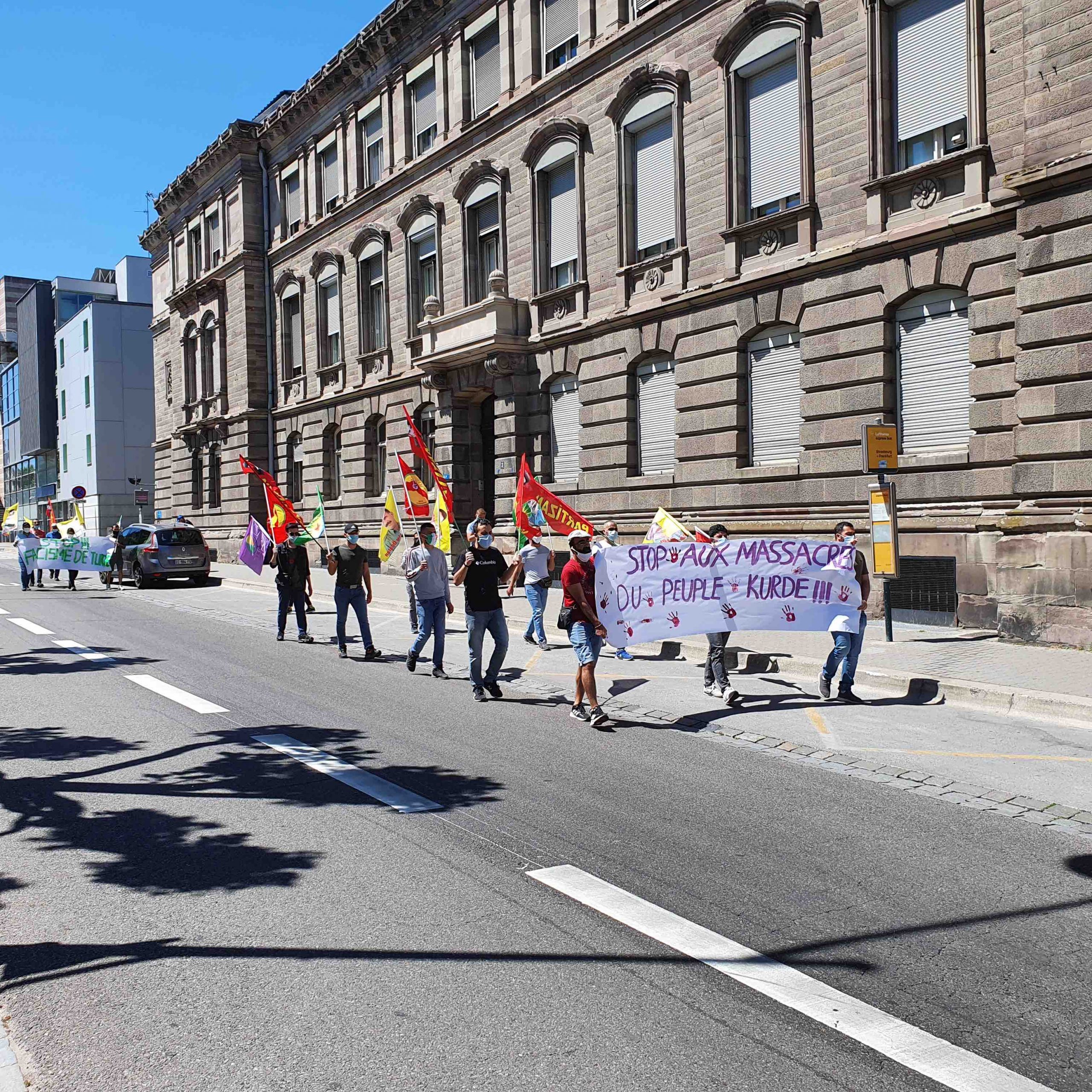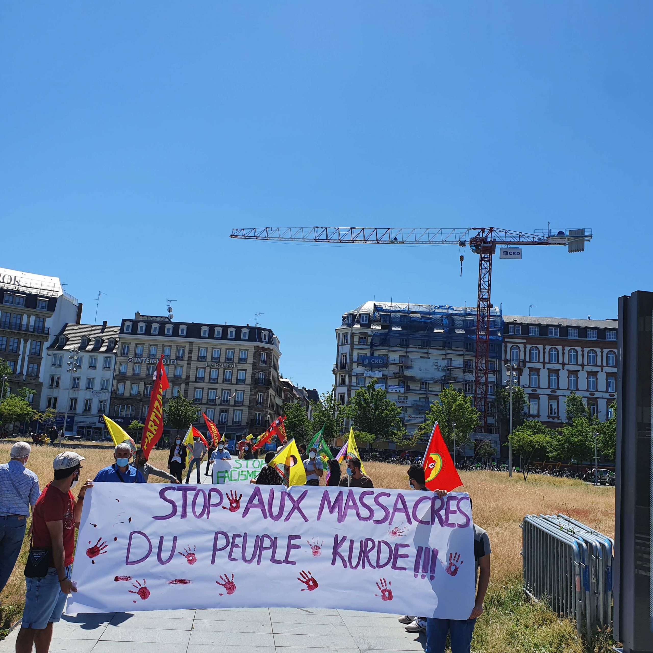 Faşist AKP-MHP özel savaş hükümetinin Kürt halkına karşı yarattığı saldırgan atmosfer ve ırkçı saldırılar, Fransa’nın Strasbourg kentinde düzenlenen yürüyüş ile protesto edildi.