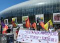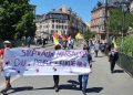 Saat 13’te merkez tren istasyonunda toplanan gençler, Fransızca, “Türk faşizmine son!” ve “Kürt halkına yapılan katliama dur de!” yazılı pankartlar ile yürüyüşe başladı. Sık sık Fransızca ve Kürtçe, “Kürdistan’da uygulanan faşizme dur de” ve “Katil Erdoğan” sloganlarını attı. Yürüyüşte Halklar Önderi Abdullah Öcalan’ın posterlerinin yanı sıra KCK, PKK, TJK-E ve Partizan bayrakları da açıldı. Çarşıda yapılan yürüyüş sırasında yapılan ajitasyon çevredekilerin dikkatini çekti.