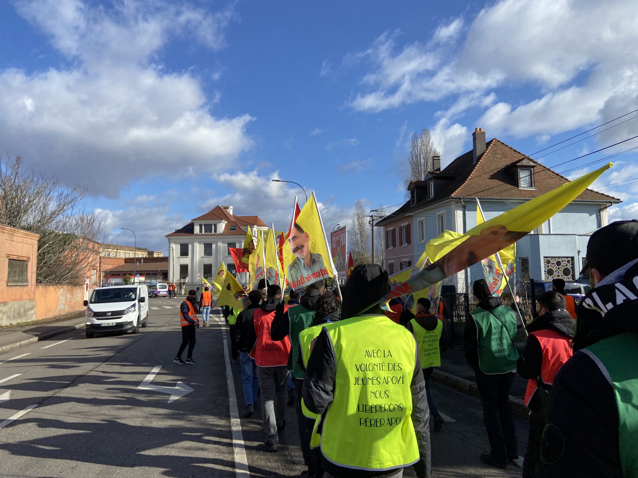 Sabah saatlerinde Mulhouse‘de toplanan Kürt gençleri ve yurtsever halkın katılımı ile Uzun Yürüyüş eyleminin 2‘inci gününde alanda bulunan faşistler kitleyi provake etmeye çalışsada, kitle büyük bir coşkuyla provakasyonları boşa çıkardı. Faşistlerin alandan uzaklaşması ardından gençler, „Bijî Serok APO“ , „Bijî Berxwedana Gerîla“ ve „Şehîd Namirin“ sloganları eşliğinde yürüyüşe geçti.