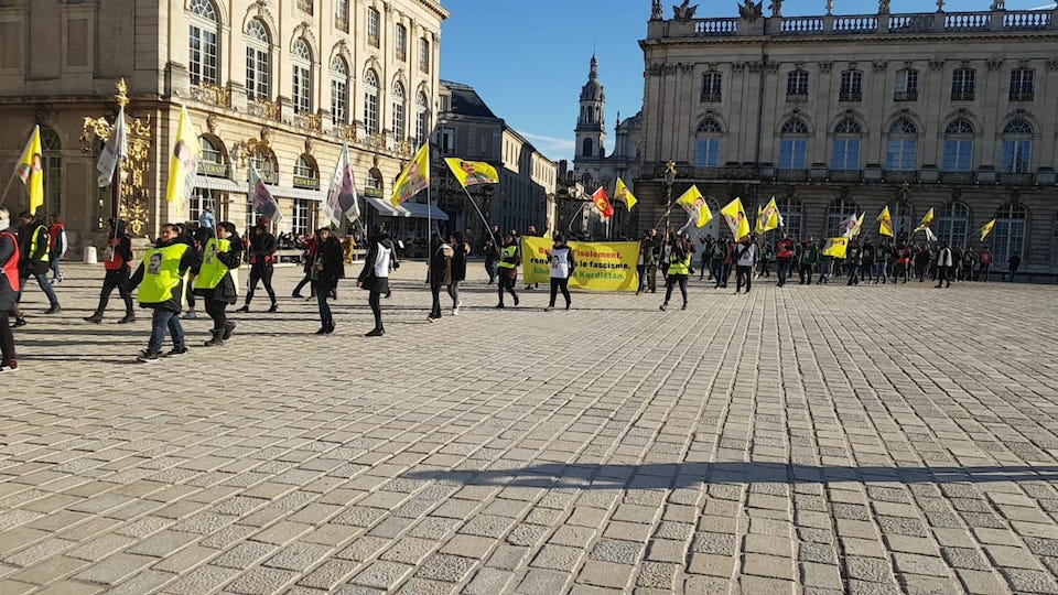 HABER MERKEZİ – Kürt gençlerinin ve enternasyonalistlerin Uzun Yürüyüş’ü bu sabah 5. gününde Nancy şehrinde başladı. Yaklaşık bir saat şehir merkezinde yürüdükten sonra Nancy merkez tren istasyonuna ulaşan eylemciler, burada mola verdiler ve öğlen yemeği yediler. Mola verilen tren istasyonu meydanında gençler ve enternasyonalistler hep beraber govend tuttular ve oyunlar oynadılar. Kalabalık olan meydandan geçenler ilgiyle eylemcileri izledi ve eylemin ne için yapıldığını öğrenmek için sorular sordular.