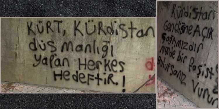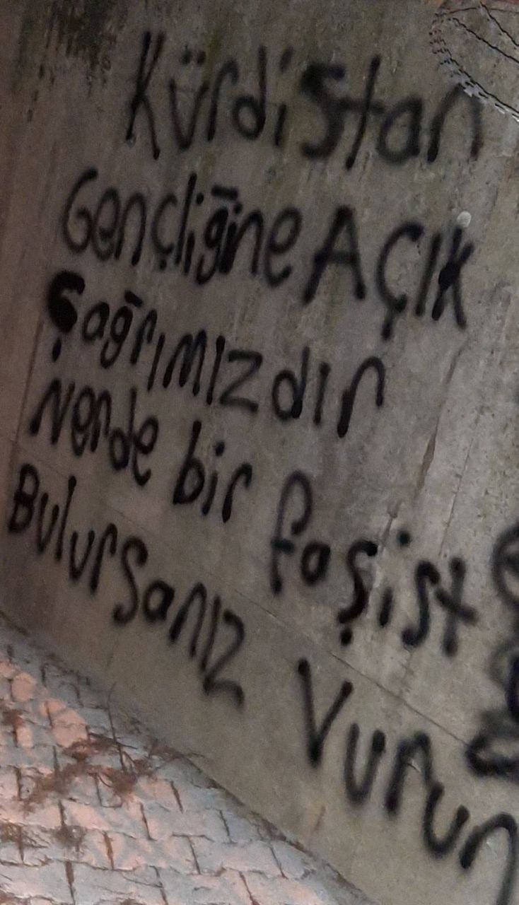 İnisiyatif üyeleri, duvarlara, “Kürt ve Kürdistan düşmanlığı yapan herkes hedeftir” ve Kürdistan gençliğine açık çağrımızdır nerede bir faşist bulursanız vurun” yazdı.