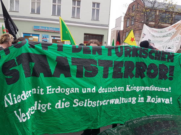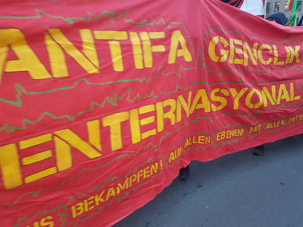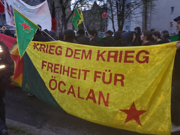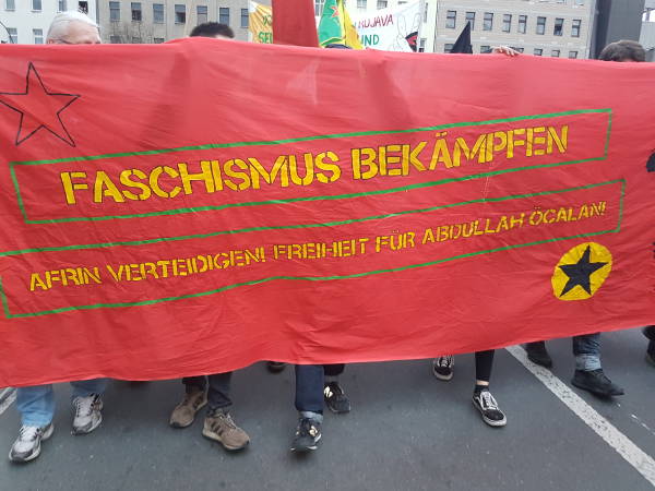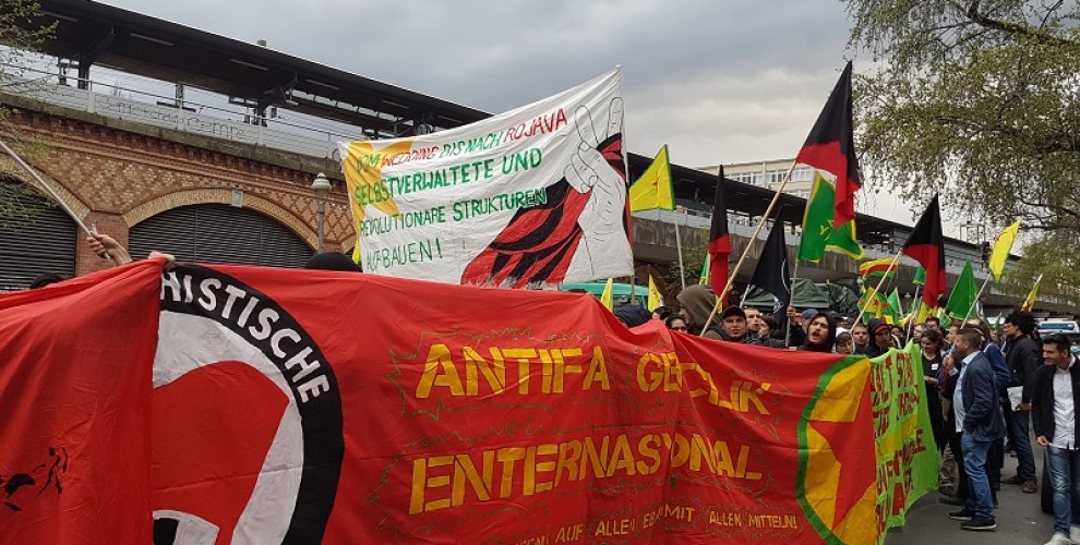 Antifaşist enternasyonalist Alman gençleri, Kürt gençleri ile birlikte Kürt Halk Önderi Abdullah Öcalan’ın özgürlüğü ve Efrîn’e destek için Wedding’de yaklaşık 5 km’lik bir yürüyüş gerçekleştirdi. Yürüyüşte boyunca Efrîn’le dayanışma, PKK ve Öcalan sloganları atıldı.