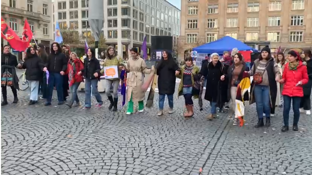 Kürt ve enternasyonalist kadınlar TekoJIN öncülüğünde bir araya gelerek Almanya'nın Frankfurt kentinde 25 Kasım etkinliği düzenledi.