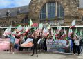 Aachen tren garında gerçekleşen mitingde farklı ülkelerden katılan gençler farklı dillerde açıklamalarda bulundular.