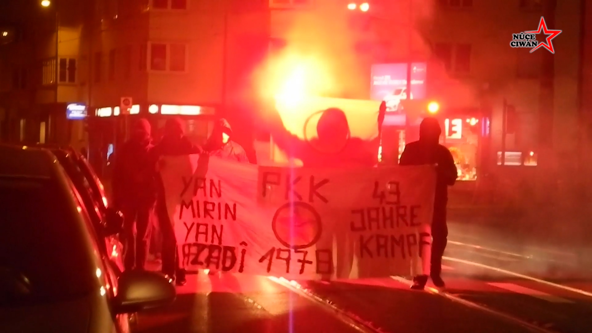 27 Kasım gecesi kentin işlek caddelerinde yürüyen gençler, “43’ncü Mücadele Yılı – Ya Özgürlük Ya Ölüm” yazılı pankartın ardında yürüdü. PKK bayraklarının açıldığı yürüyüşte, Almanya’daki ‘PKK yasağı’ da protesto edildi.