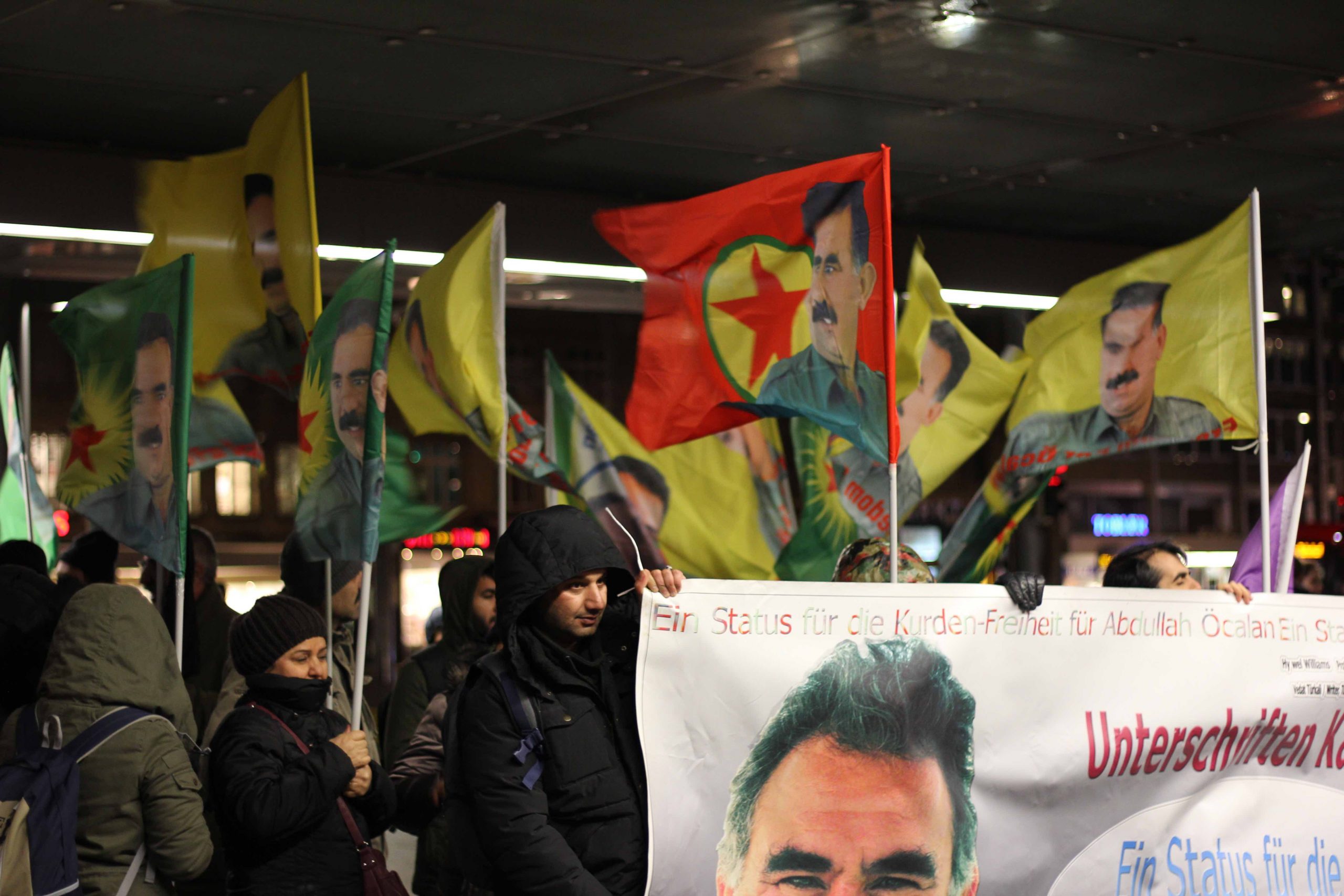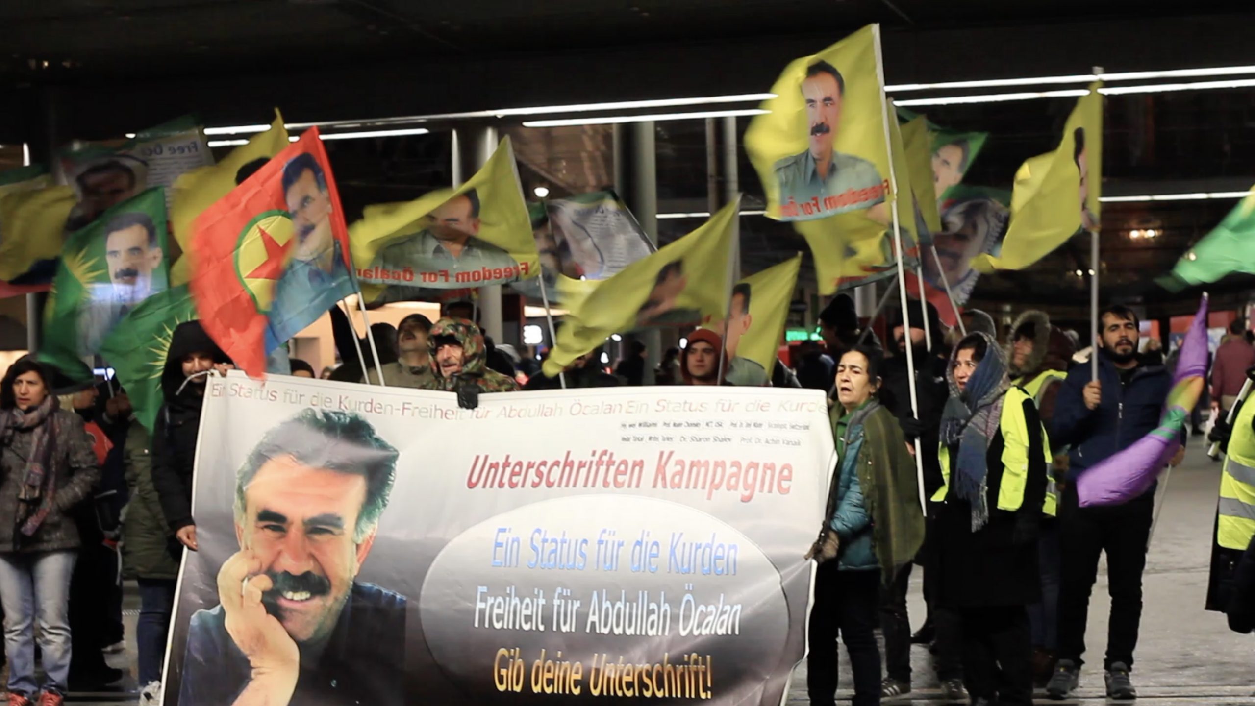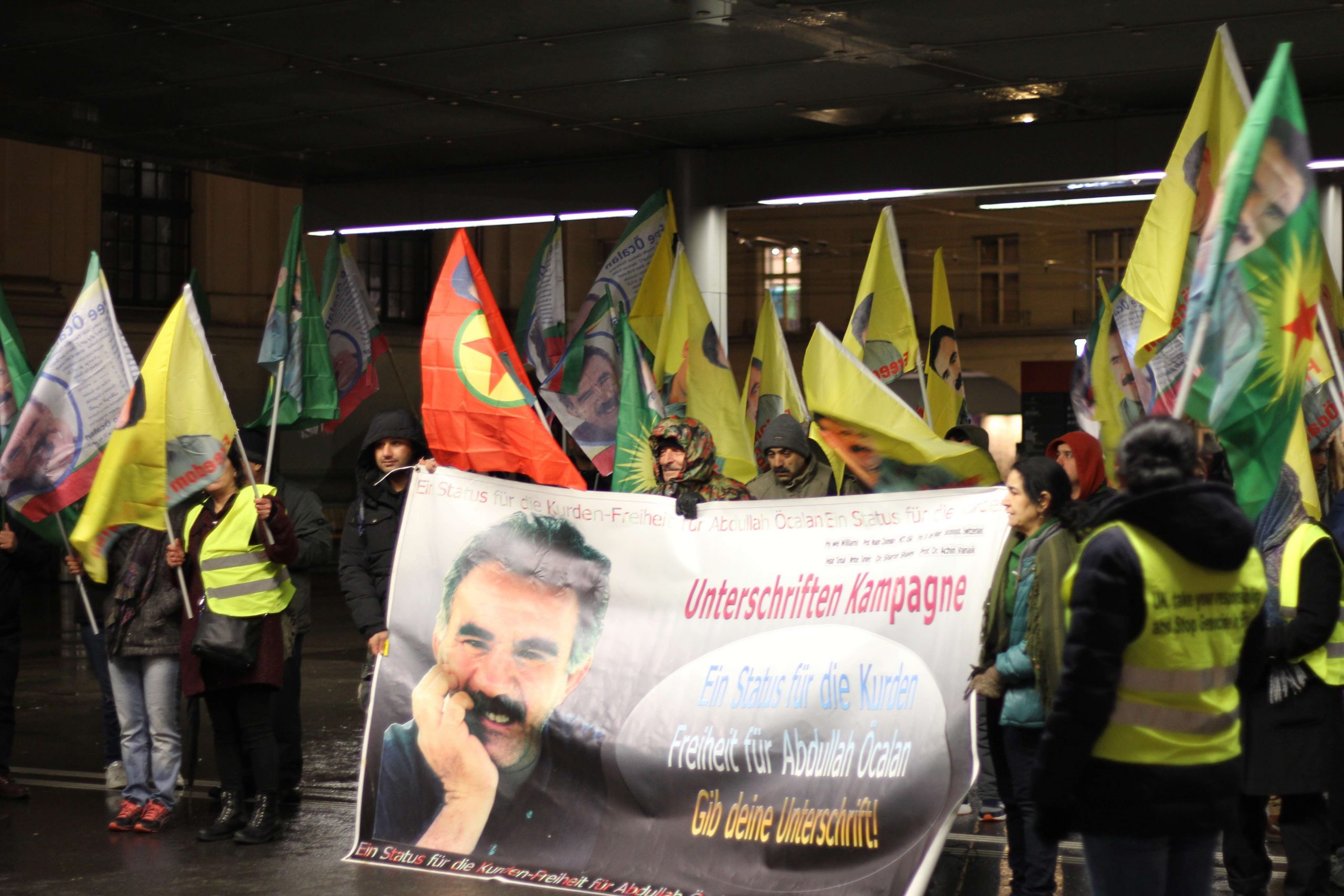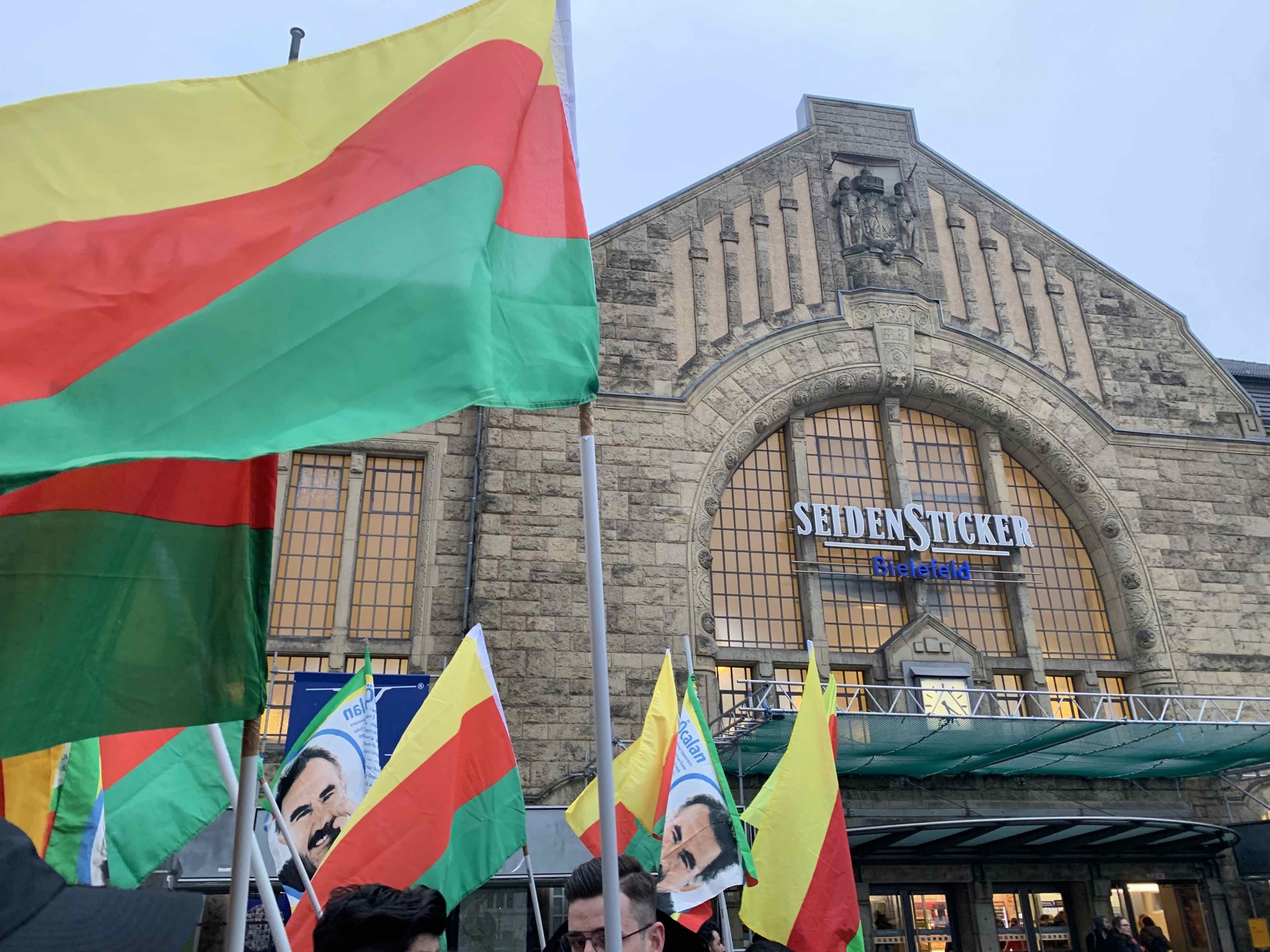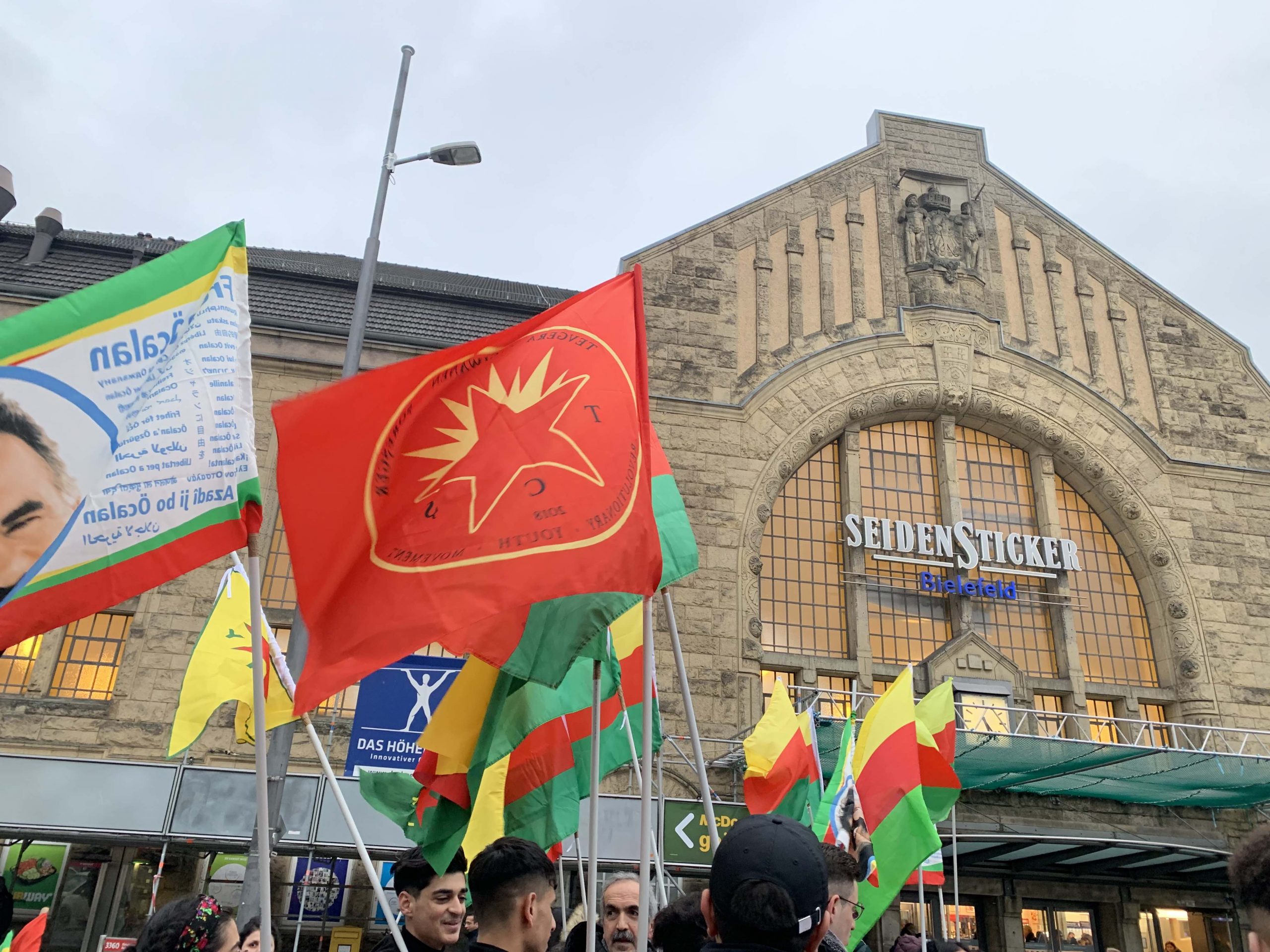 Halklar Önderi Abdullah Öcalan’ın tecrit altında tutulduğu İmralı adasında yangın çıktığına dair haberlerin yayılması sonrası Almanya’nın Bielefeld kentinde merkez tren istasyonunda ‘’Önder APO‘suz bir yaşama izin verme!” sloganı altında miting düzenledi .