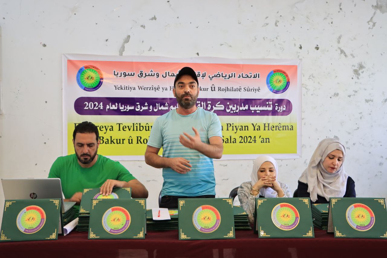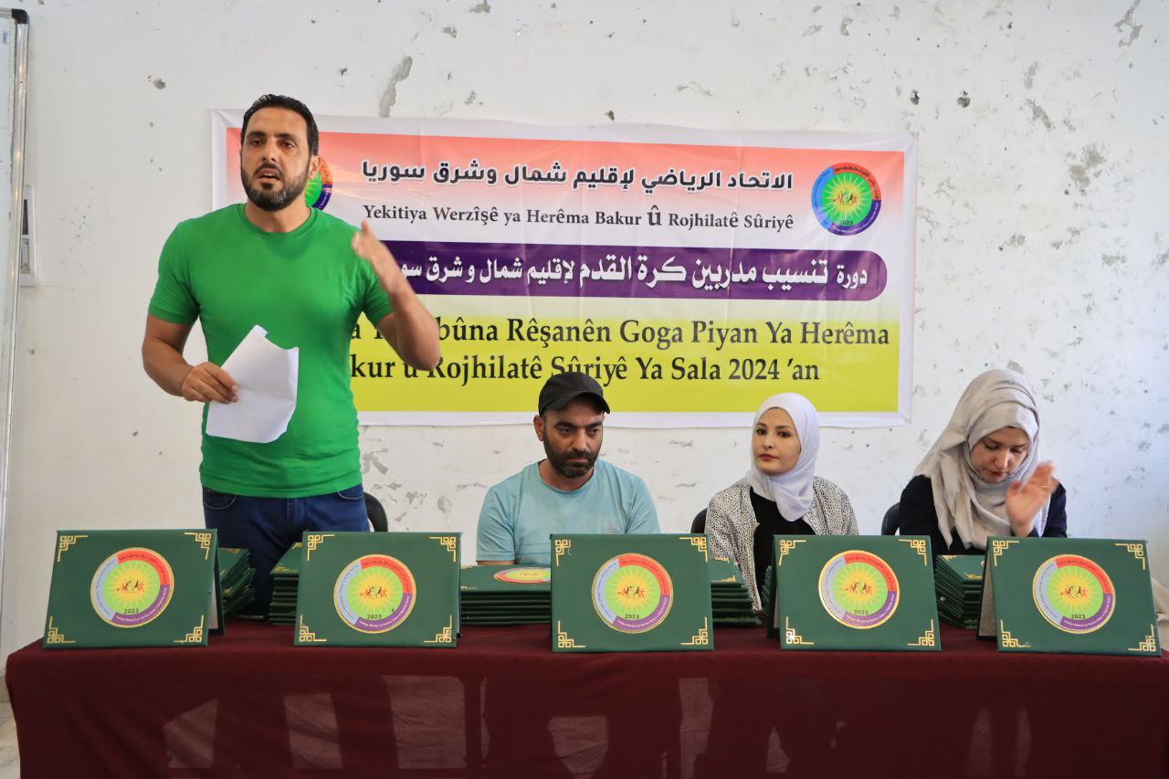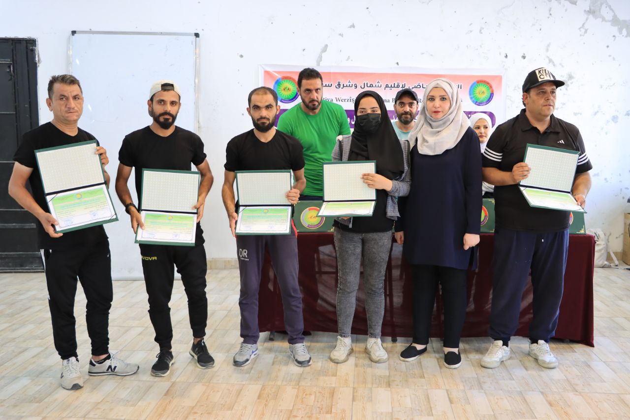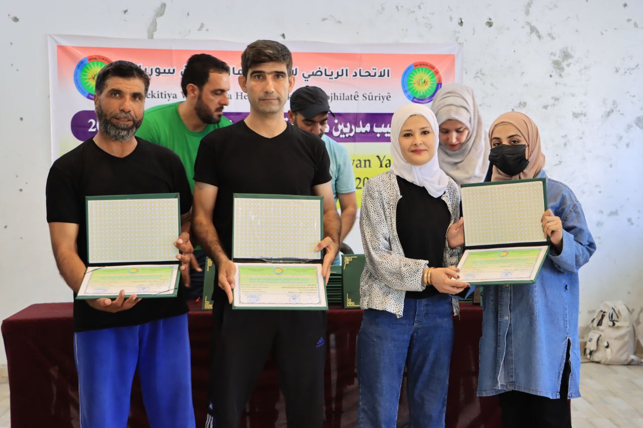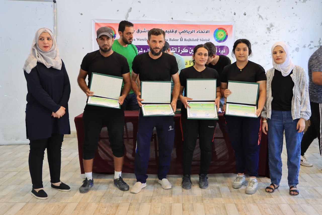 Teorik ve uygulamalı test ve değerlendirme ile sona eren etkinlik sonunda antrenörlere Kuzey ve Doğu Suriye bölgesindeki bölgelerde spor çalışmaları yapma ve Kuzey ve Doğu Suriye Bölgesi Spor Federasyonu ailesine katılma yetkisi veren antrenör akreditasyon belgeleri dağıtıldı.