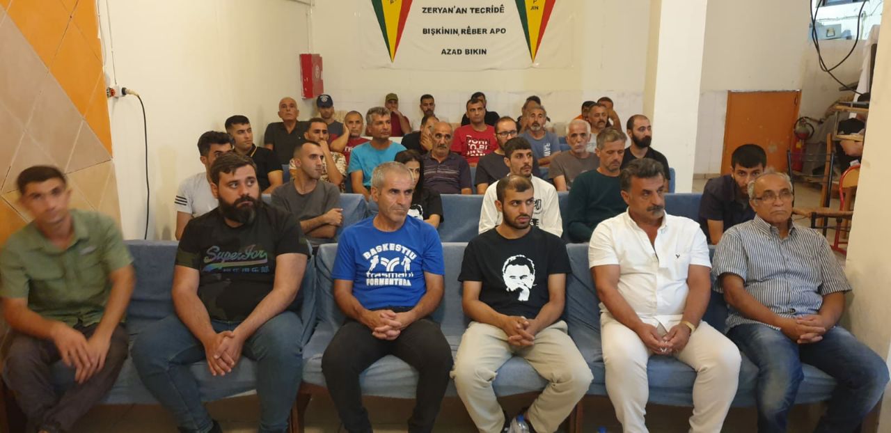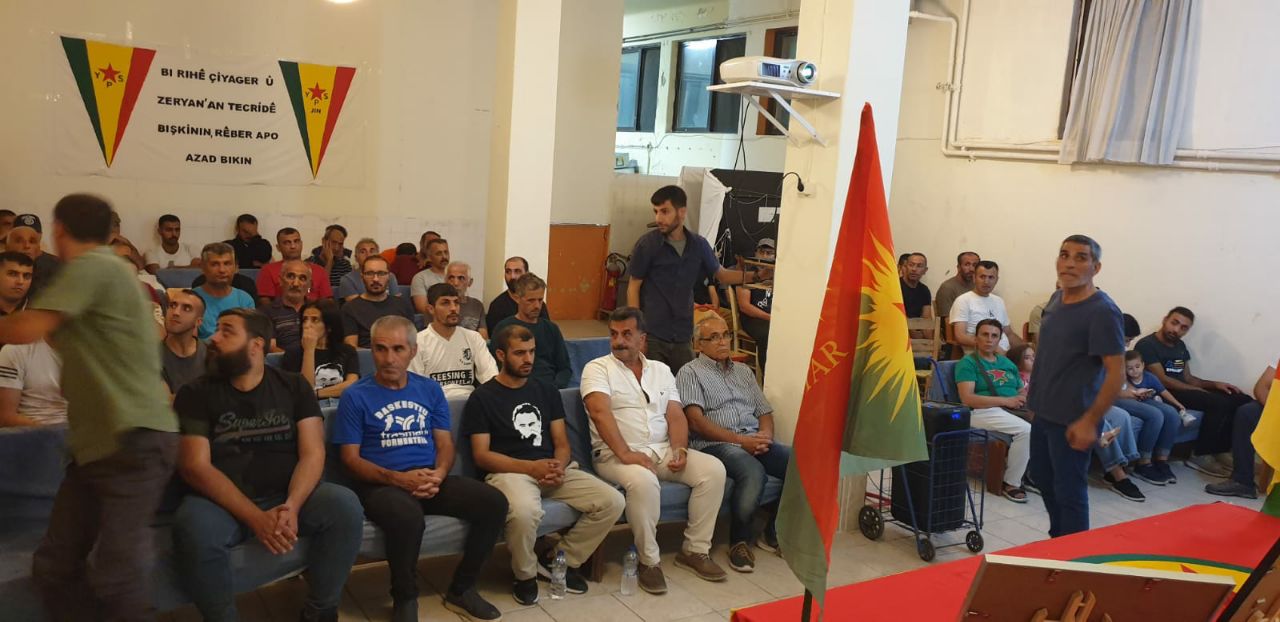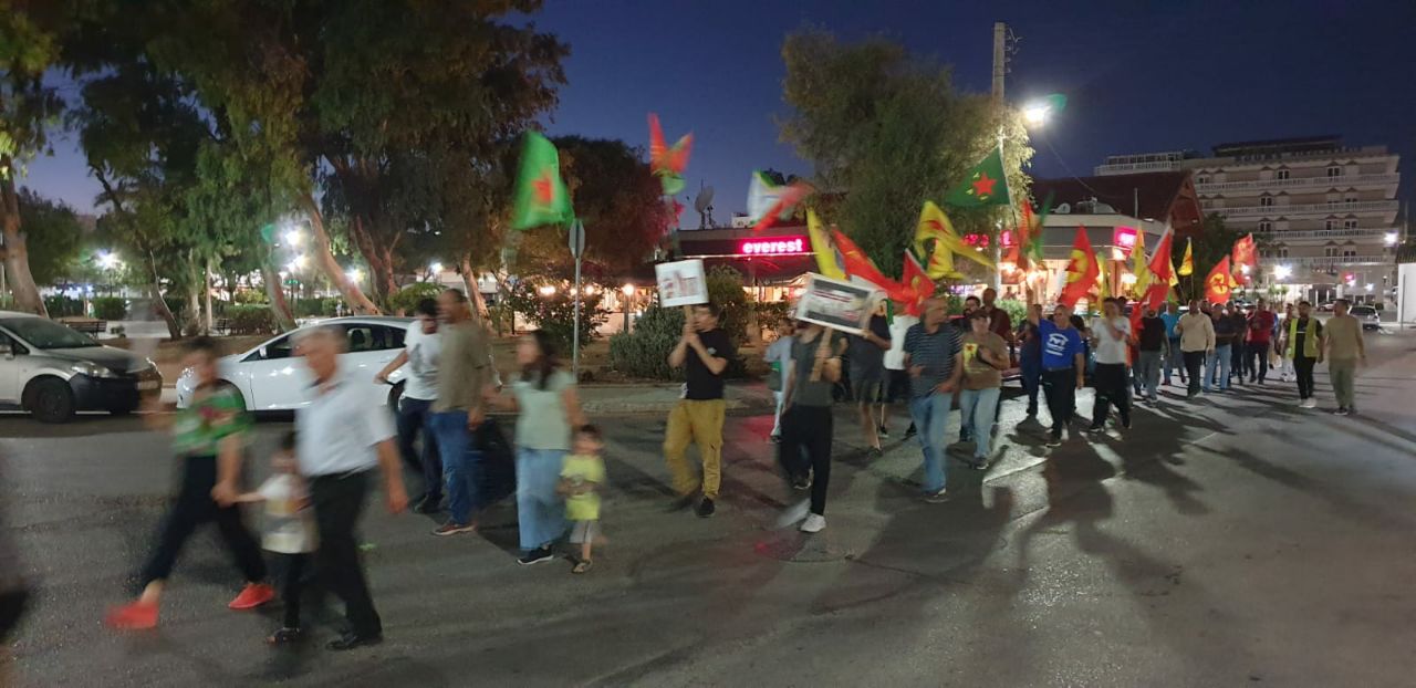 “Defend Kurdistan” yazılı pankart, Önder APO posterleri ve PKK bayraklarının taşındığı yürüyüş, Önder APO’ya uygulanan ağır tecrit ve keyfi uygulamalara karşı ve faşist TC’nin işgal saldırılarına karşı gerçekleştirildi.