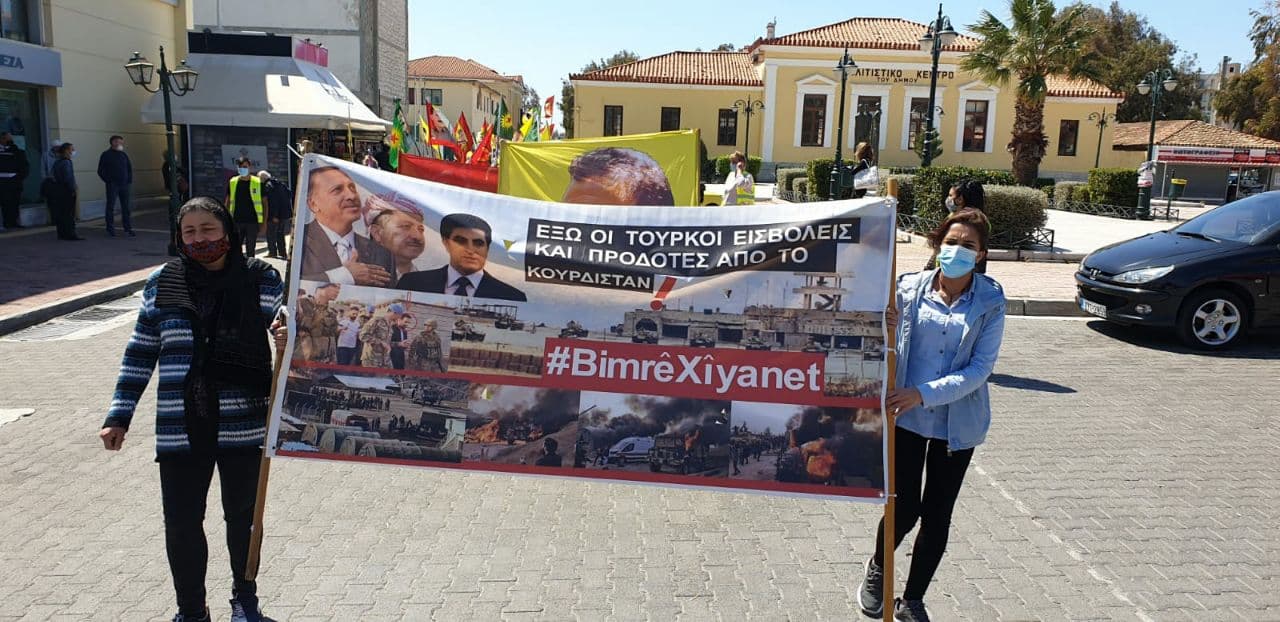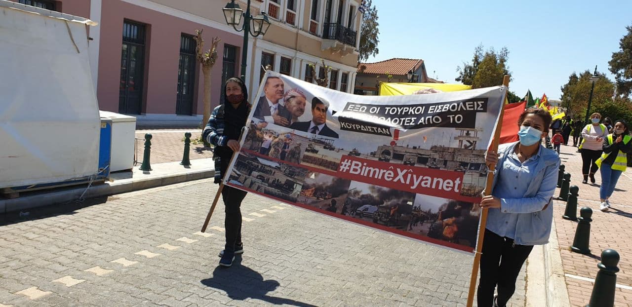 LAVRİO – Yunanistan’ın Lavrio şehrinde işgalci TC devletinin KDP işbirliğiyle Metîna, Zap ve Avaşîn’e yönelik işgal saldırılarını protesto etmek amacıyla kitlesel bir yürüyüş düzenlendi.