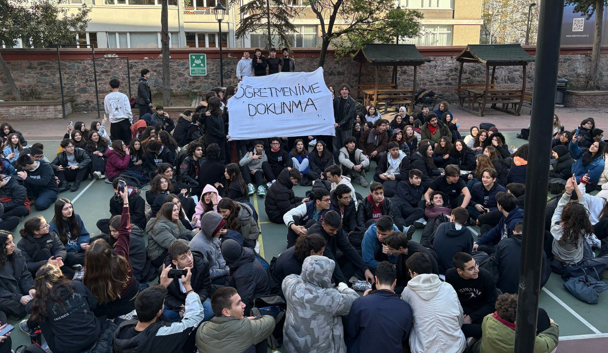 Okul yönetimi ise eylemdeki öğrencilere yaptığı anonsta “Sınıflarımızda derslerimize devam edersek çok mutlu oluruz arkadaşlar. Tepkinizi anlıyorum. En önemli görevimiz olan sınıflarda bulunup derslerimize katılma görevini ihmal etmemiz sizler açısından da bizler açısından da öğretmenlerimiz açısından da olumlu değil. Arı bal yaparsa arıdır arkadaşlar” ifadelerini kullandı.