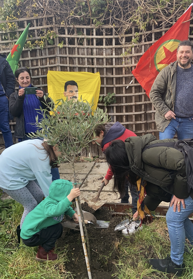 Gençler öncelikle Önder APO’nun 73. doğum gününü kutlamak için zeytin ağaçları diktiler. Bu yılın Önder APO’nun fiziki özgürlüğünün sağlanacağı yıl olcaacağını vurgulayan gençler şunları dile getirdi: „Bugün 4 Nisan, Önder APO’nun doğum günü tüm Kürdistan halkına kutluyoruz. Bugün 4 Nisan’nın anlam ve önemi açısından Strasbourg’da Kürt gençleri Avrupa Parlamentosu önünde bir eylem gerçekleştirdiler. Fransa faşist devleti arkadaşlarımıza yönelik saldırı gerçekleştirdi ve eylemlerini önlemek istediler. Biz bu saldırıları kınıyoruz ve boyun eğmeyeceğimizi vurguluyoruz. Arkadaşlarımızın arkasındayız.”