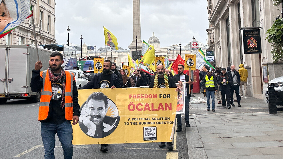 Miting öncesi Kürdistanlılar, Devrimci Gençlik Hareketi’nin küresel hamleyi selamlama amaçlı 3’üncü ve son gününde sürdürdüğü uzun yürüyüşe katıldı. Tottenham Court bölgesinde başlayan yürüyüşe çok sayıda kişi katılırken, Önder APO’ya özgürlük hamlesine dair pankart ve afişler taşındı. Sık sık, “Bijî Serok APO”, “Free Öcalan”, “Bijî Gerîla”, “Dün Mandela bugün Öcalan”, “Kahrolsun TC faşizmi” ve “Bê Serok Jiyan Nabe” sloganları atıldı.