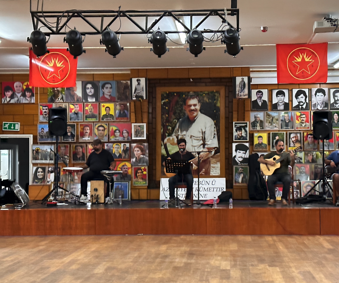 Şölende sık sık, “Bijî Serok APO”, “Kurdistan Faşizme Mezar Olacak”, “Jin Jiyan Azadî” ve “Gerilla” sloganları atıldı.