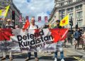 LONDRA – İngiltere’nin başkenti Londra’da 11 Haziran için Latin Amerika’dan enternasyonal dostlar tarafından “Defend Kurdistan” sloganıyla yapılan küresel eylem çağrısı temelinde Londra’da BBC binasının önünde Britanya Kürt Halk Meclisi, Jiyan Kadın Meclisi ve Britanya Devrimci Gençlik Hareketleri (TCŞ/TekoJIN) enternasyonalist ve sol-sosyalist örgütlerle birlikte eyleme start verdi.