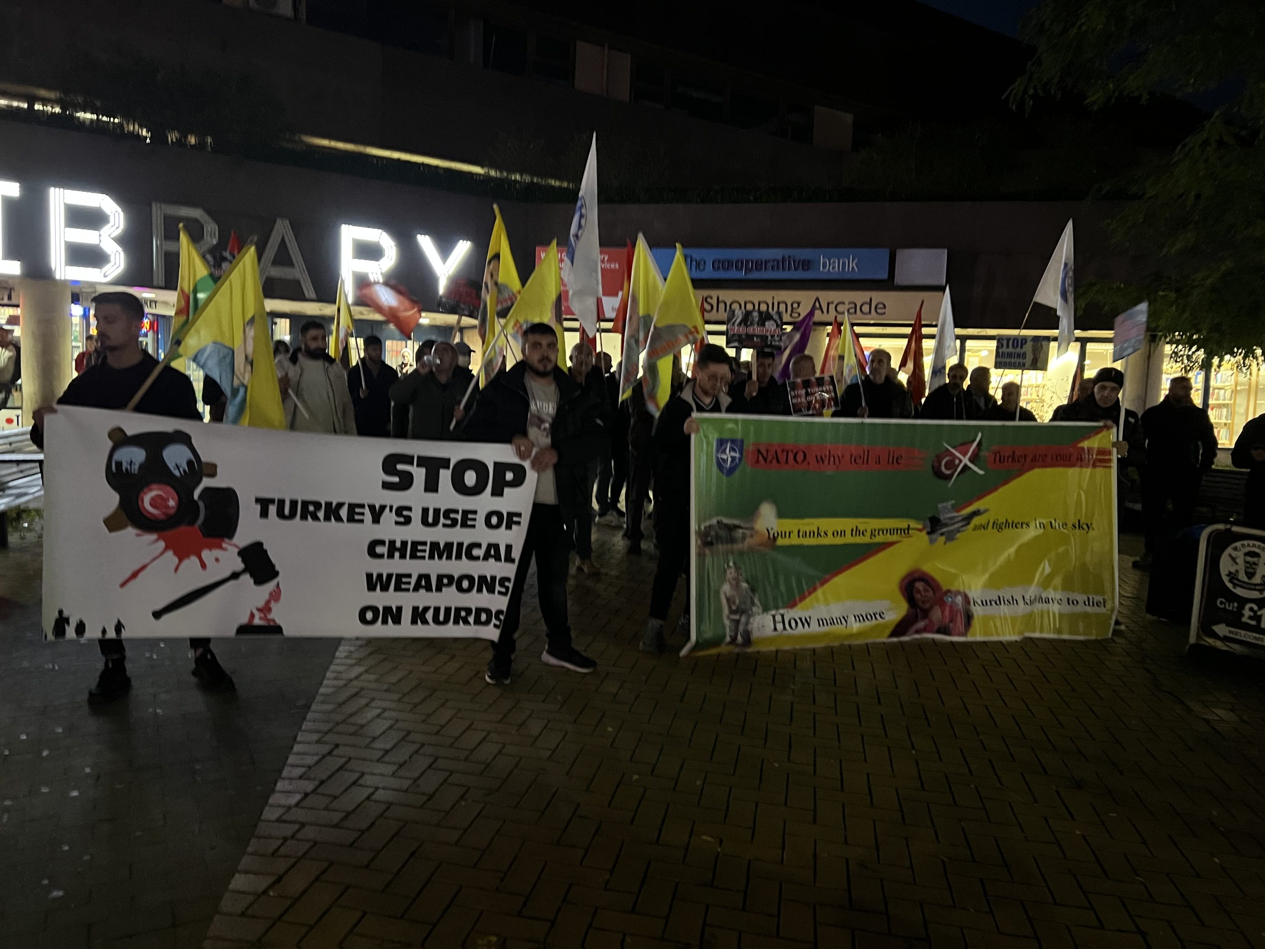LONDRA – Britanya Devrimci Gençlik Hareketi (TCŞ/TekoJIN)’ın çağrısı üzere bugün faşist TC devleti tarafından kullanılan kimyasal silah sonucunda ağır etkiler bir kez daha sürüyor. Kürdistan özgürlük gerillası ve özgürlük hareketi üzerinde yoğunlaşan imha ve tasfiye saldırıları ve operasyonlarına karşı Wood Green Kütüphanesi önünde prostesto eylemi gerçekleştirdi.