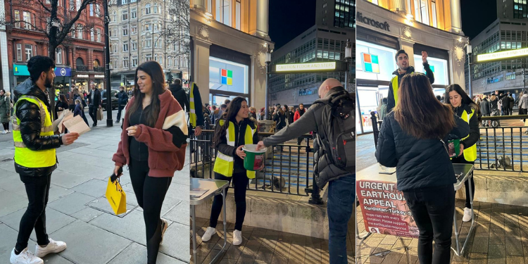 Londra’da TCŞ’li gençler (Tevgera Ciwanên Şoreşger – Devrimci Gençlik Hareketi) bir araya gelerek, Londra’daki farklı işlek tren istasyonlarında Kurdistan’da depremden etkilenen depremzedeler için Heyva Sor’un başlattığı kampanyaya destek sunmak amacıyla bağış masası açtı.